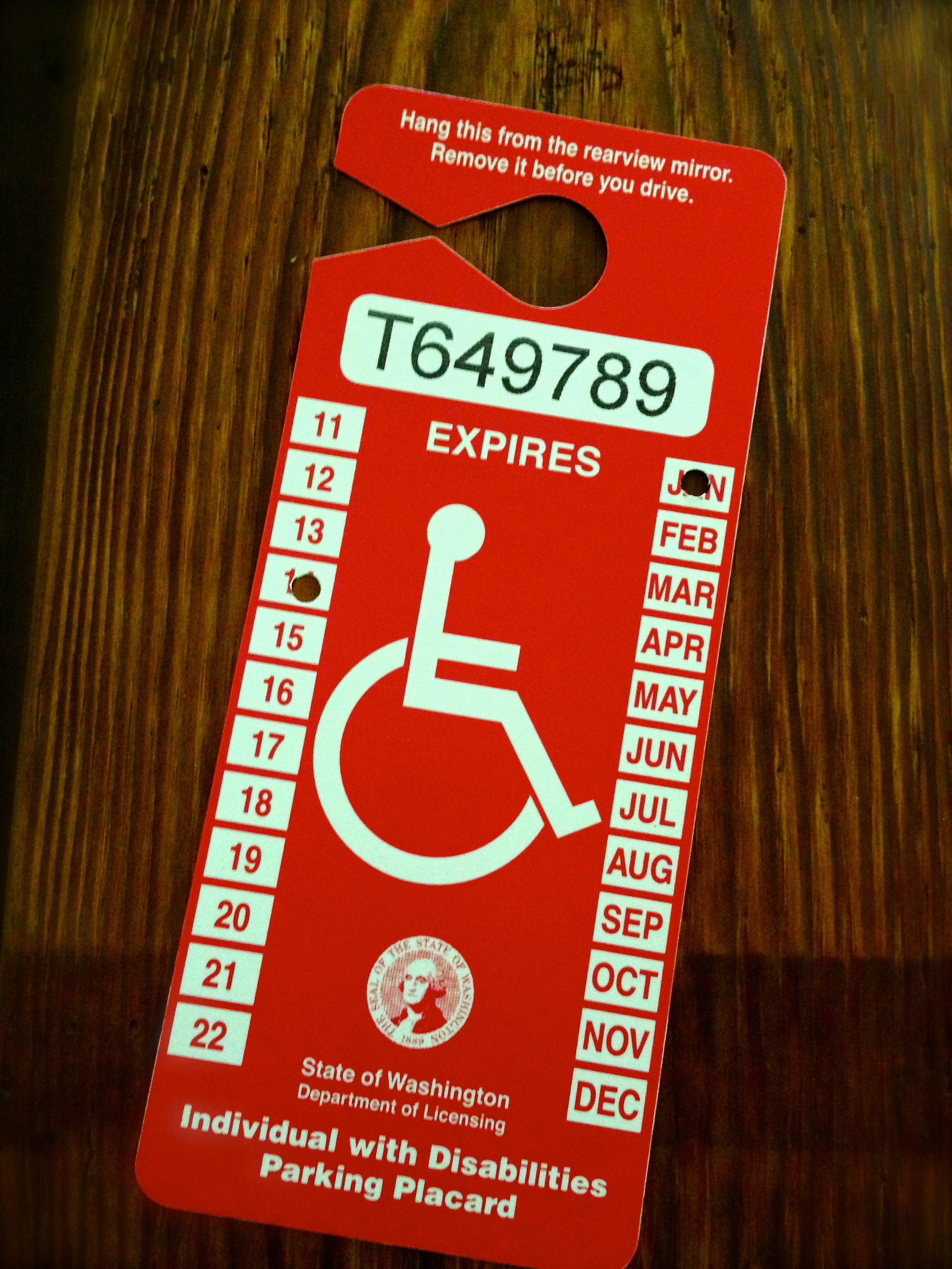 HEALTH HANDICAMS July 23, 2013September 20, 2018by caringforcamille PSSST…Wanna know the best part of surgery? Handicap pass! I’m good for 6 months; and I can’t wait to park in downtown Seattle cause it’ll be free! Share this: Click to share on X (Opens in new window) X Click to share on Facebook (Opens in new window) Facebook Like Loading... Related
