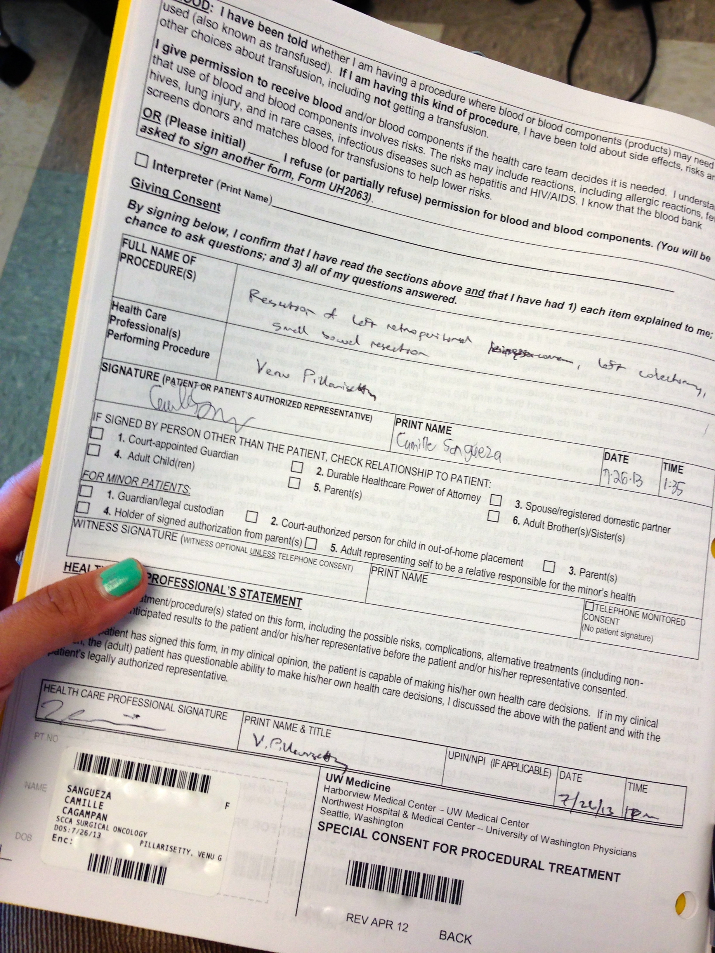 Today I met with the surgeon at Seattle Cancer Care Allliance, Dr. Venu Pillarisetty. He consulted with several of his colleagues at a multidisciplinary meeting and presented to me with confidence that he can remove this mass. Hearing that was sweet music to my ears! The surgery is scheduled for August 3rd, exactly one month from my last surgery date. It’s quite too soon considering I’m still recovering, but I just can’t have this thing growing in me anymore.