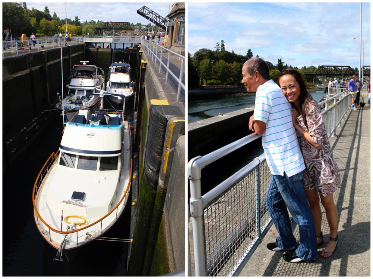 First up is Ballard Locks which was built in 1911. It provides a link for boats between the salt water of Puget Sound and the fresh water of the Ship Canal, which connects eastward to Lake Union and Lake Washington. We were able to watch a couple sailboats and yachts passing through, as the locks’ water levels are adjusted to allow their safe passage. My dad really liked it here.