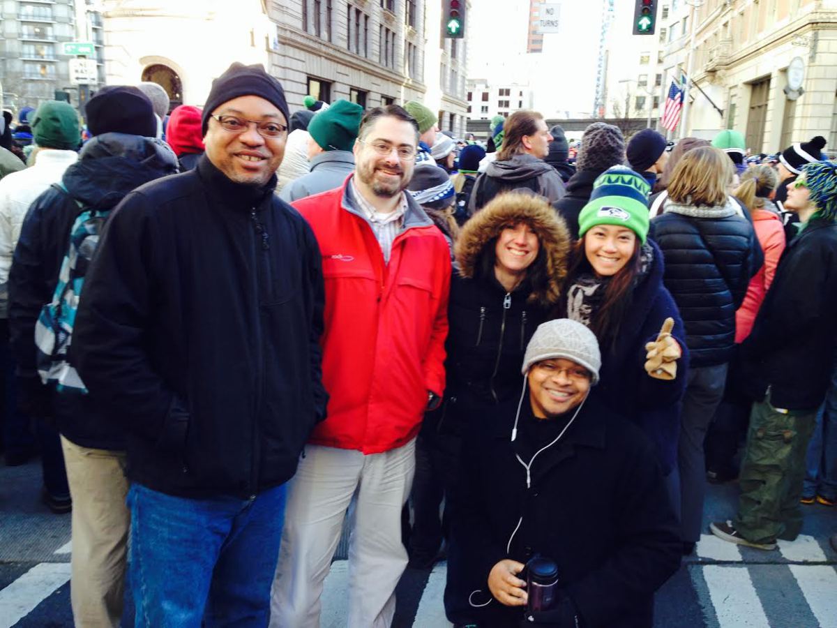 Taking a break from work to attend the Seahawks Victory Parade was an AMAZING event to experience!!! There were well over 700,000 people, who were already camping out the night before to get a good spot along 4th Avenue. Despite the 15 degree weather, the energy and spirit of the 12th man was overwhelming and I’m glad that I was part of this. Thank-you Seahawks for a great season!