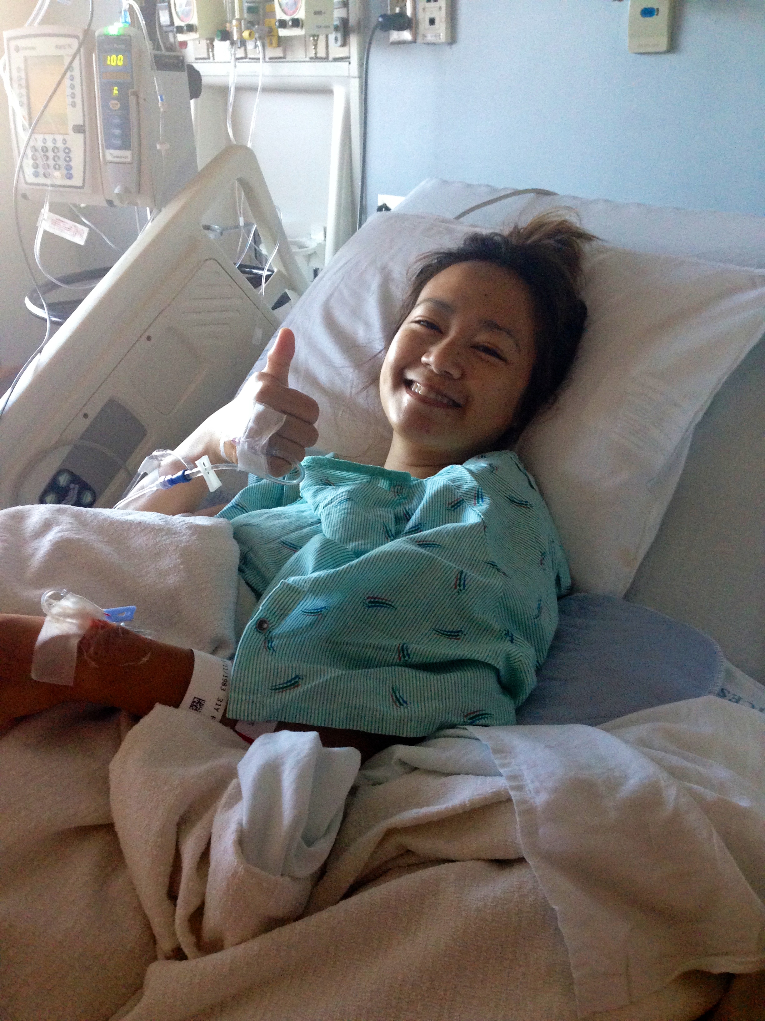 My surgery was set for 8:30 am with a check-in time of 7:00 am. After changing into those beautiful gowns that I’d be sporting for a couple days, I had a chance to meet the entire surgical team. From nurses, anesthesiologists, assistants, and the surgeon, I was ready for another battle. Last surgery everything was so vague because I was completely knocked out before going in, but this time I was awake when I went into the OR and I just couldn’t hold back the tears. I couldn’t help it…so Dr. Pillarisetty held my hand and comforted me while they put the gas mask on and I was off to never-never land.