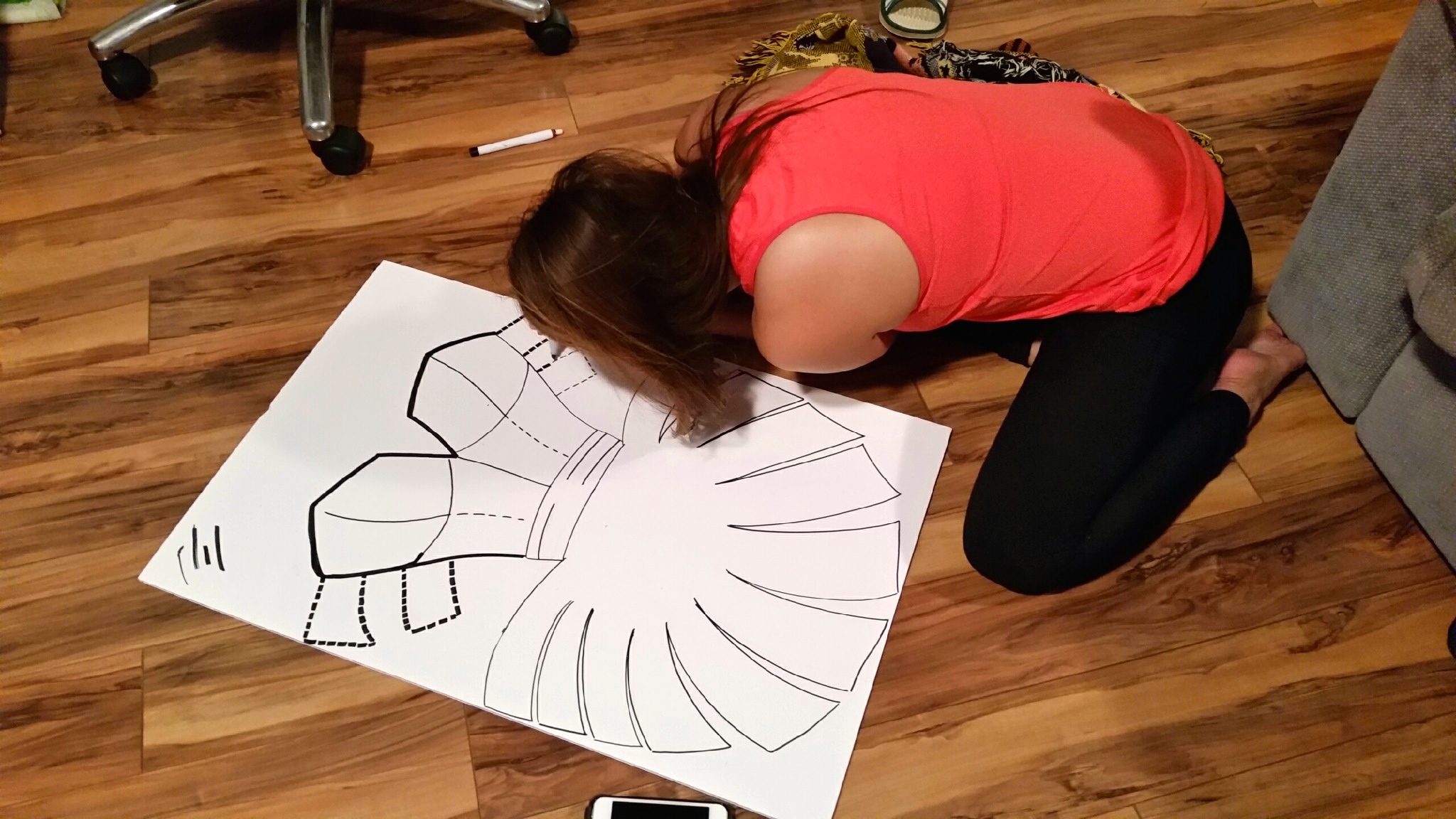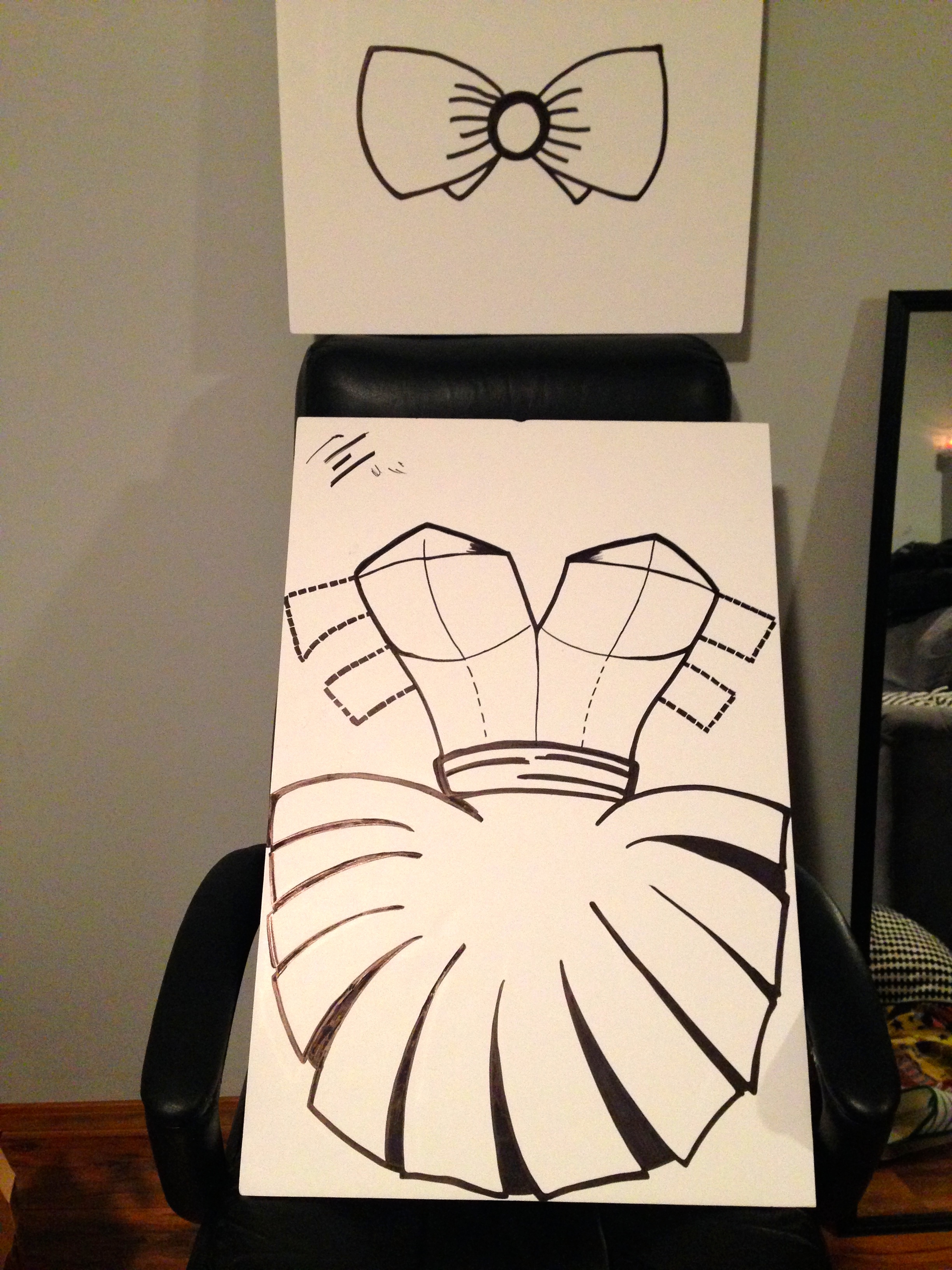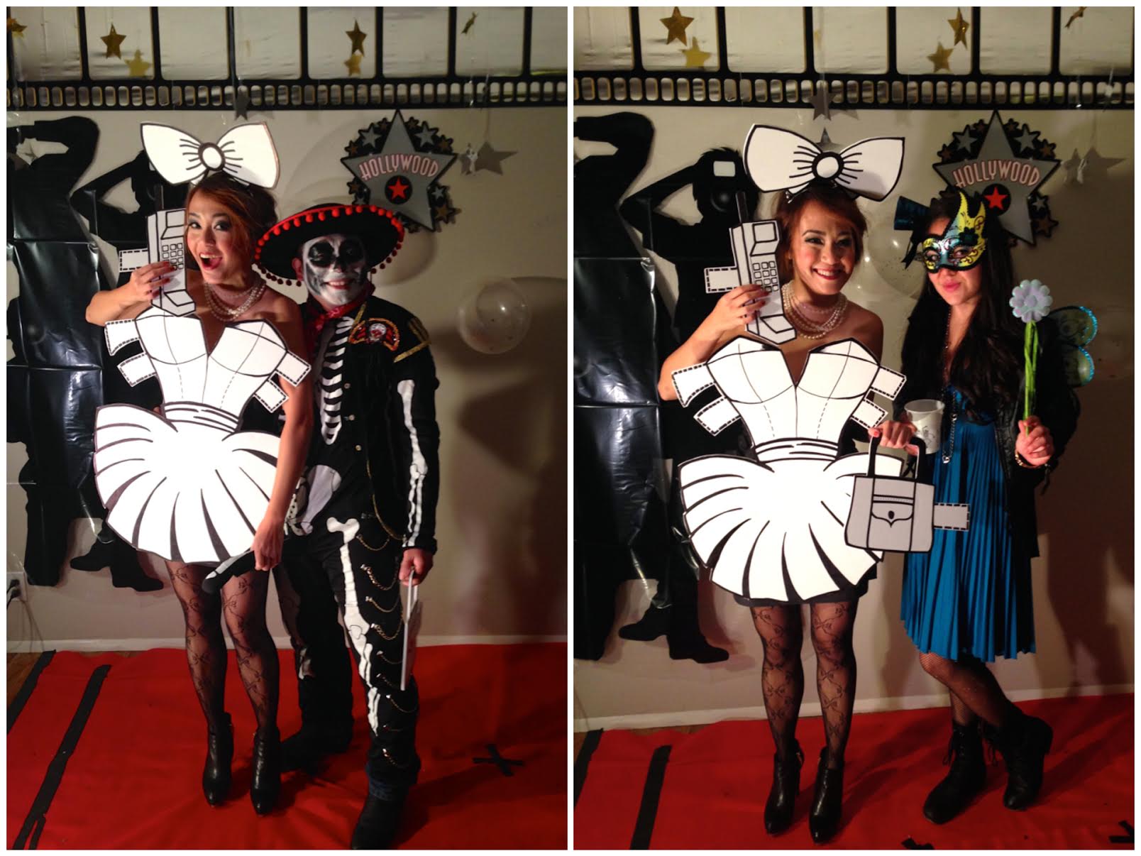 Well…all my estimation were true, except it took me 2 days!!! Andrew came over and he drew out the dress with the accessories and I basically just box cut around it. I added a ribbon on the back of the dress so that it stayed on me while I was ‘wearing’ it! I got so many good complements from it, plus it’s another DIY costume I can reuse again and again!