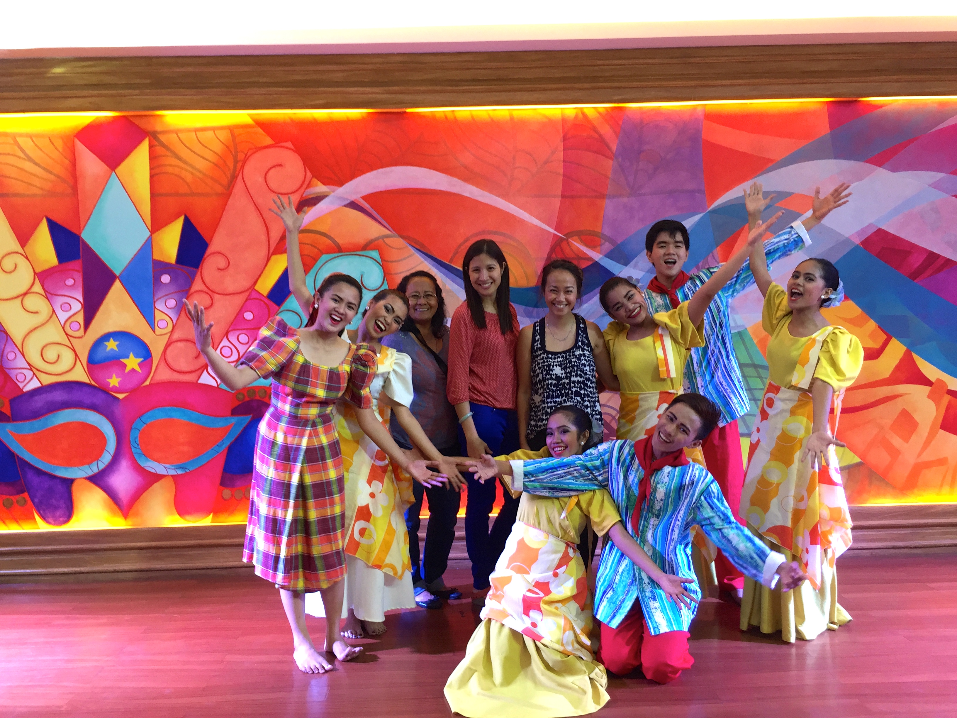 We had dinner at La Fiesta – the largest Filipino buffet in Manila. They had a wide array of delicious food – from one day old chickens, to sisig (my fav), adobo pusit, sushi, chocolate pizza…they had it all! What was also great about La Fiesta was the live entertainment! I was volunteered to participate in one of the most popular and well-known traditional dance called tinikling. It involves two people beating, tapping, and sliding bamboo poles on the ground and against each other in coordination with one or more dancers who step over and in between the poles in a dance. It’s pretty easy to keep up during the beginning but once the music starts kicking in – you better start moving those legs (in, in, out!).