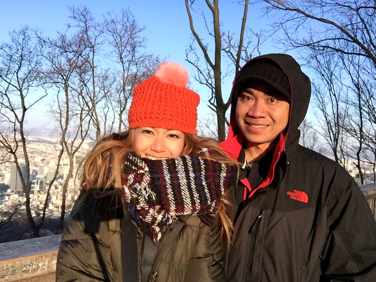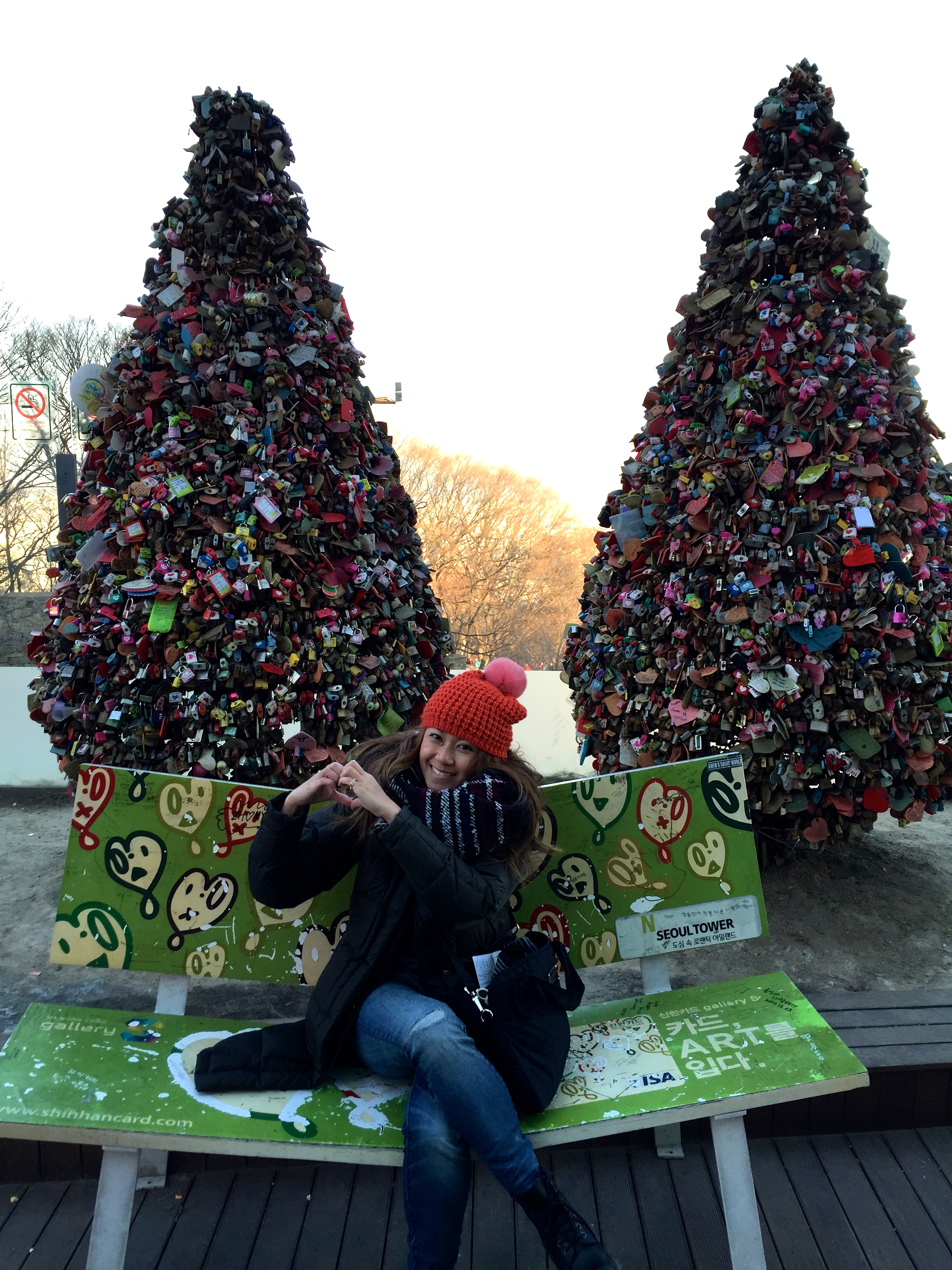 From the bus stop here, it was a short walk uphill towards the actual N Seoul Tower area. At first, I thought it was a fairly easy walk but it’s totally not. When we reach the top, we were both catching our breath plus it was sooo cold – hence our Rudolph noses!