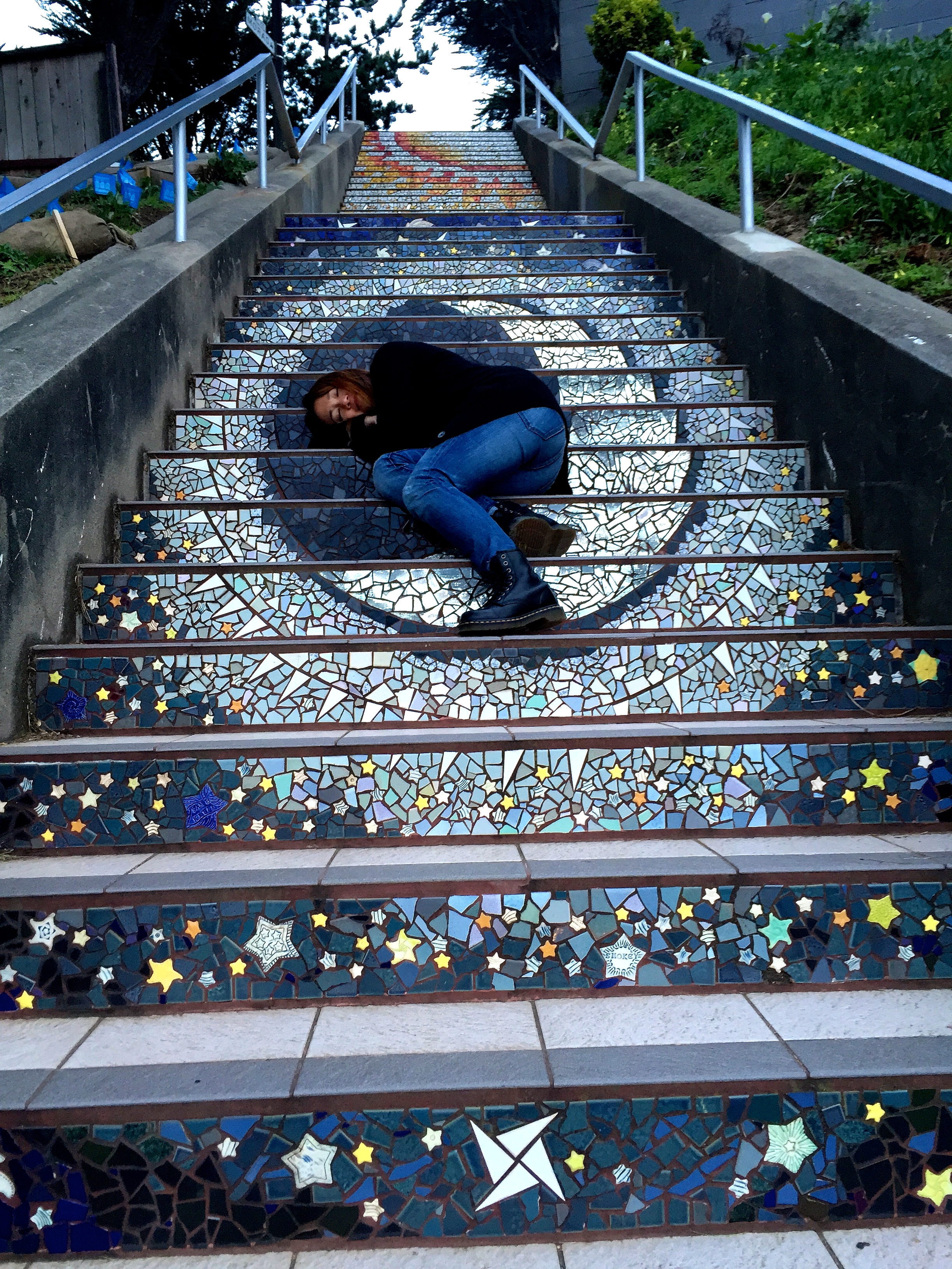 The 16th Avenue Tiled Steps project has been a neighborhood effort to create a beautiful mosaic running up the risers of the 163 steps located at 16th and Moraga in San Francisco.