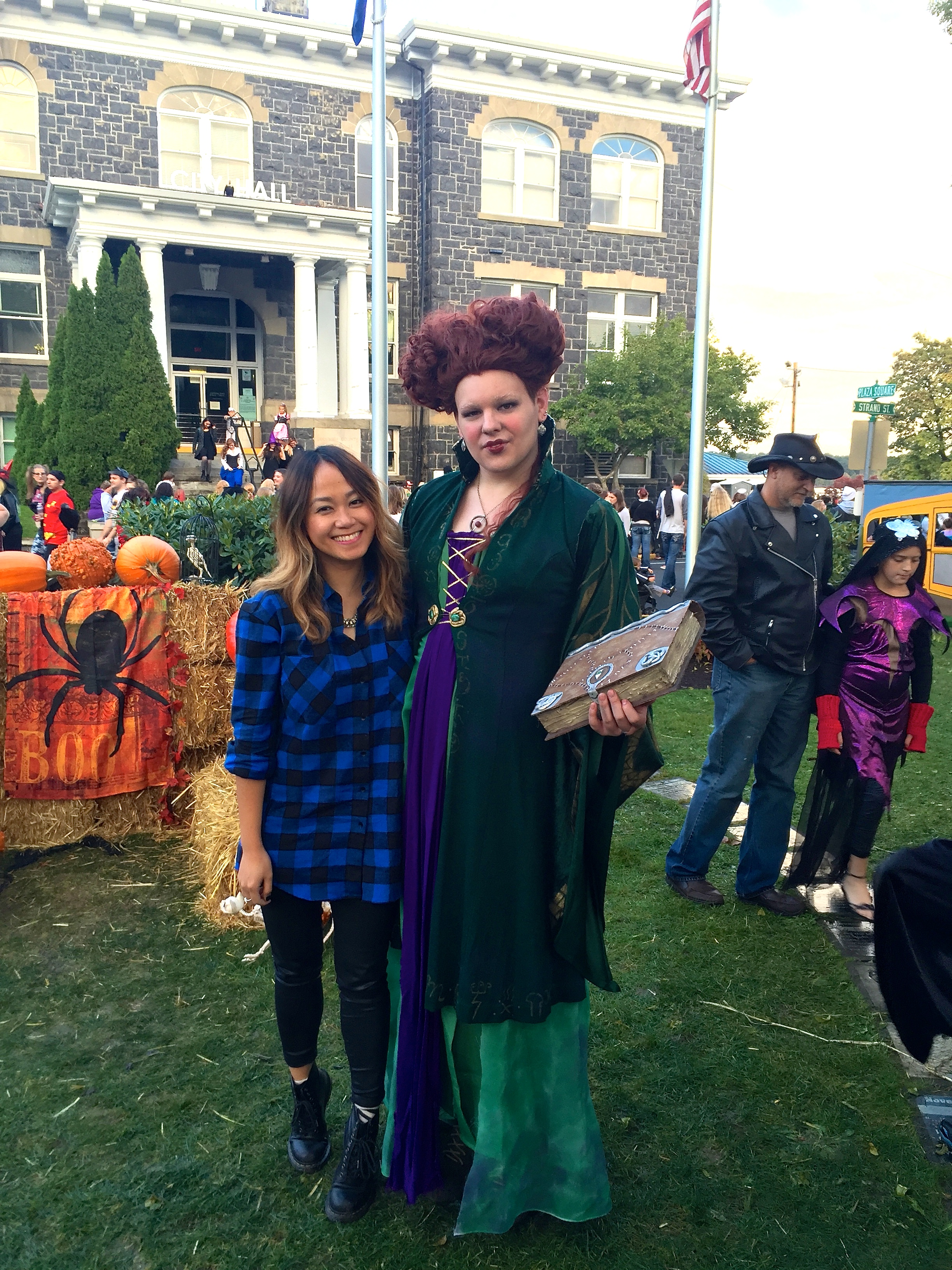 As I was scrolling through Facebook, I came across a Buzzfeed article where the lovely Oregon town of St. Helens transforms into the classic 1998 Disney film “Halloweentown”! In honor of the movie, the town holds an October month-long ‘Spirit of Halloweentown’ celebration . Ecstatic, I immediately made plans to St. Helens to re-live one of my favorite childhood movies! I was even more excited to find out that Kimberly Brown, actress who played ‘Marnie’ in the movie, announced she would be returning to Halloweentown for the giant jack-o-lantern lighting at town square!!! There were so many people dressed up in witch costumes and many great photo ops all around town.