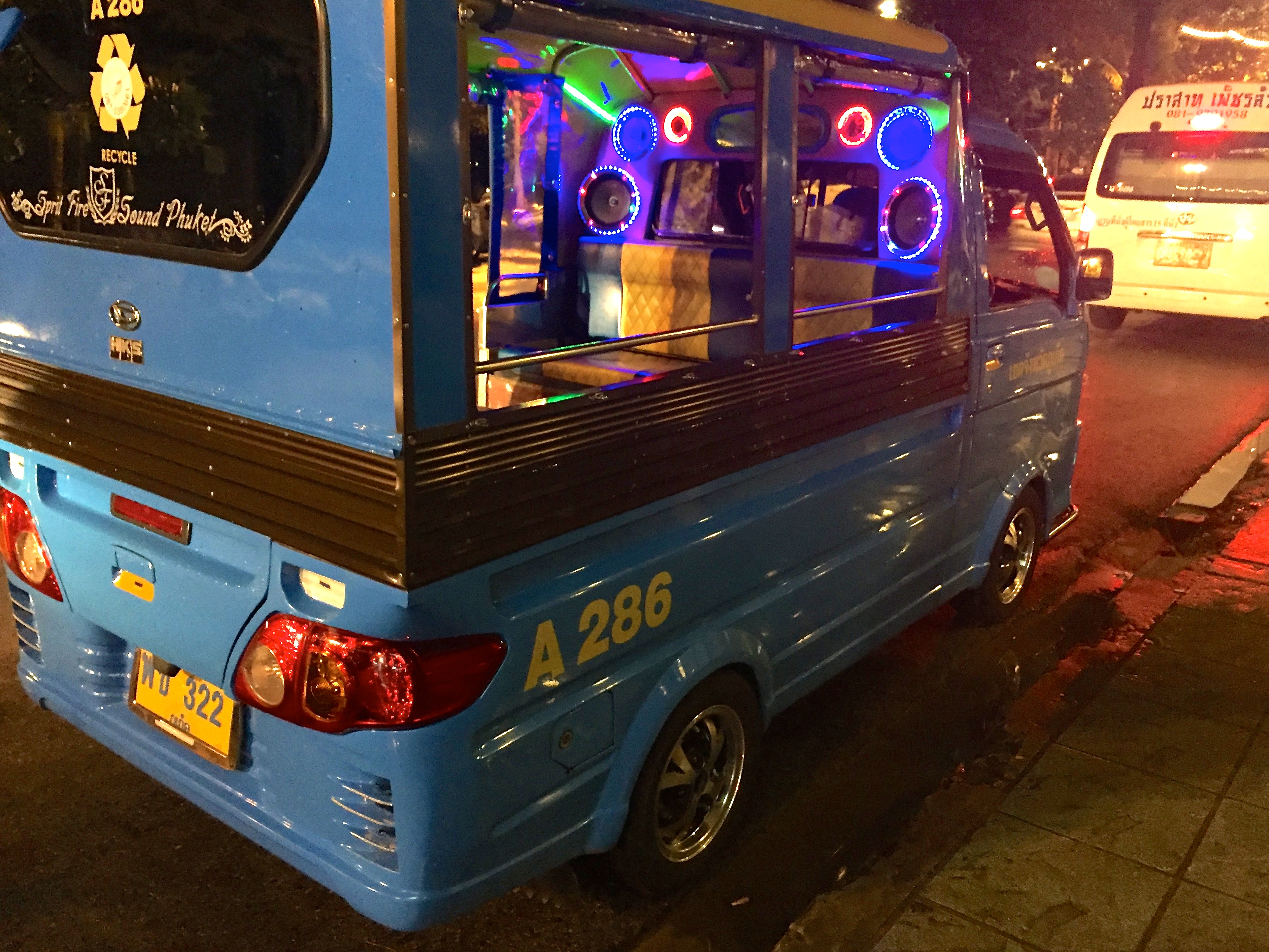 Most of the tuk-tuks in Phuket are funky and colorful, and have music blasting from speakers fit for a stadium not a car.