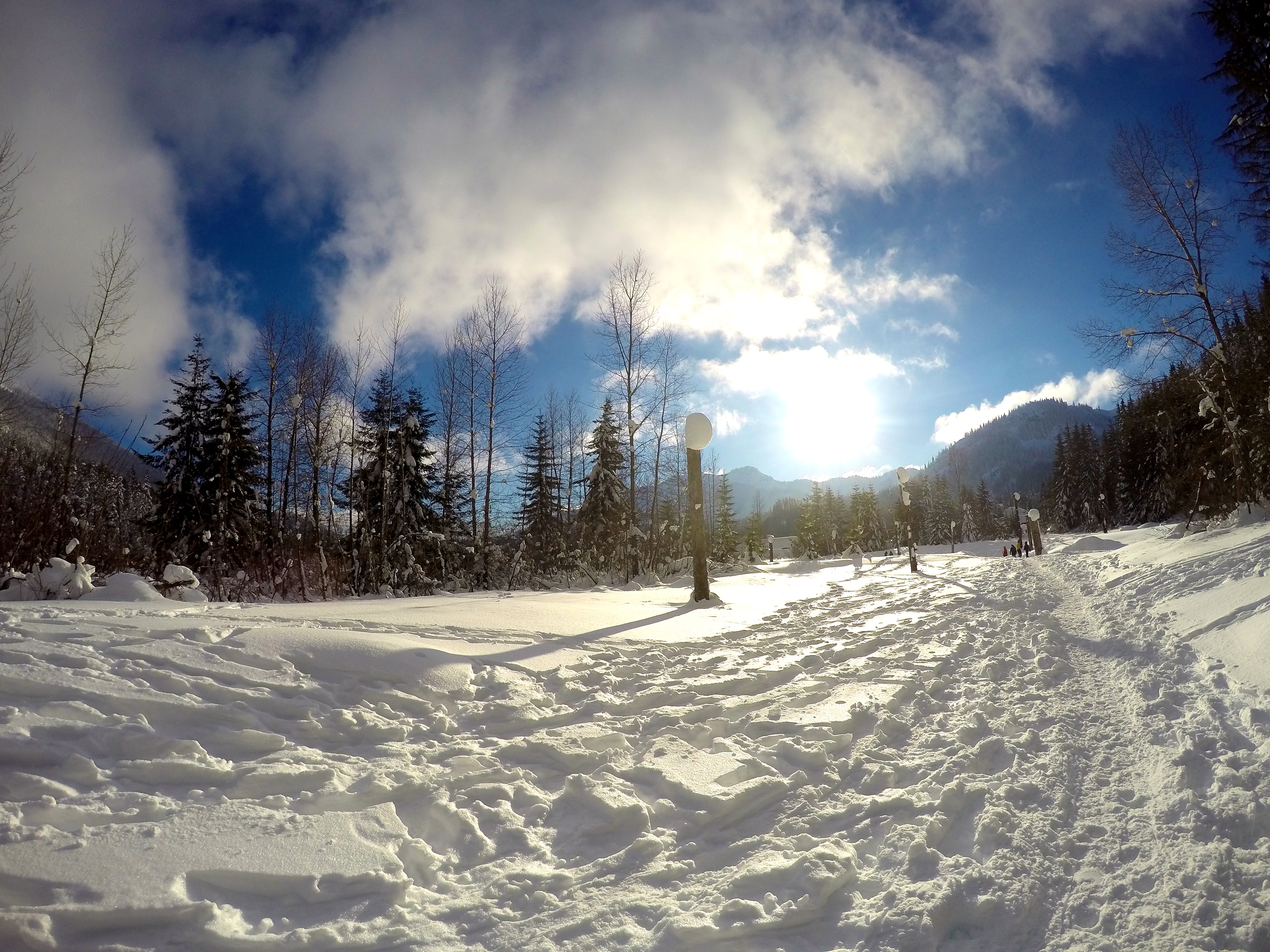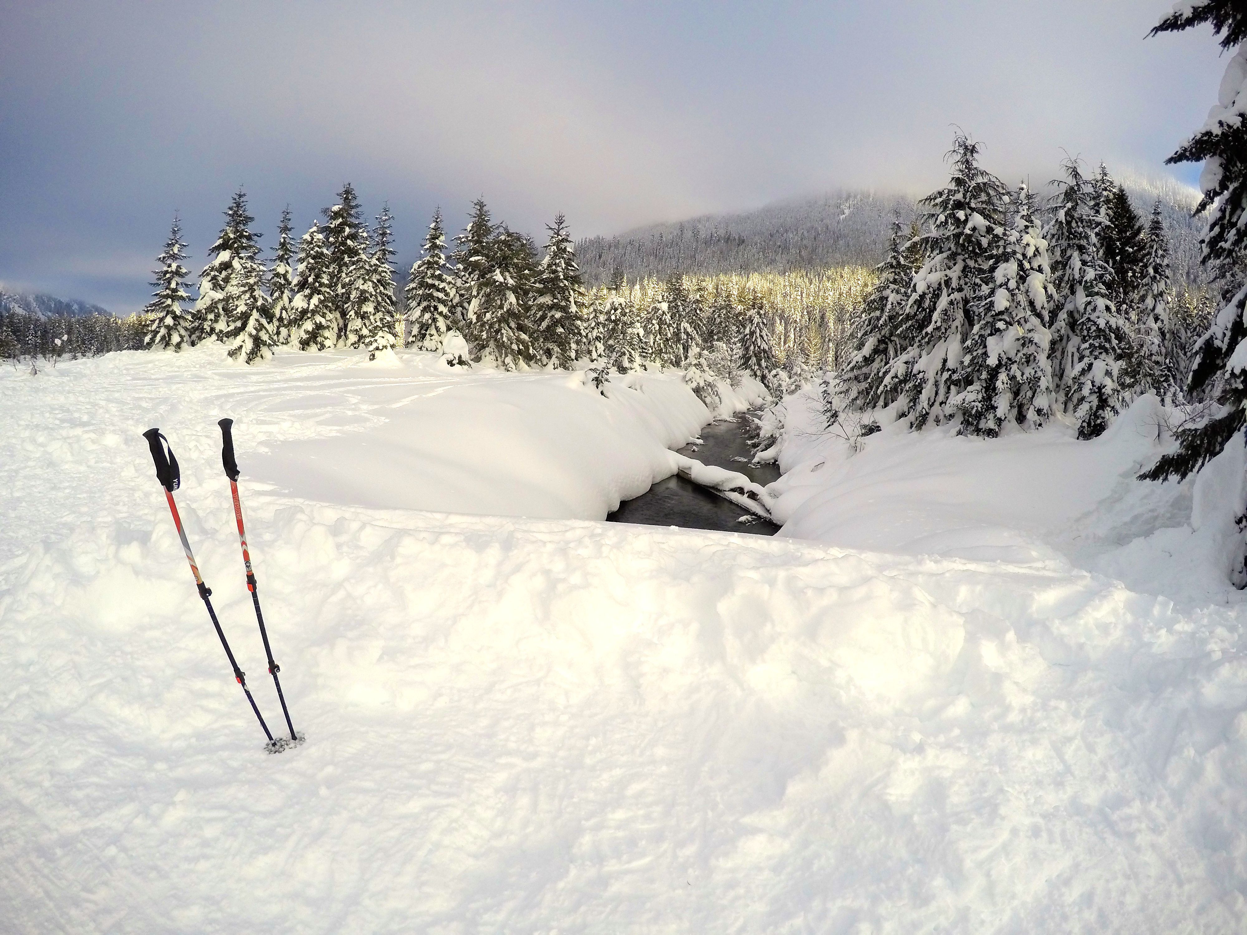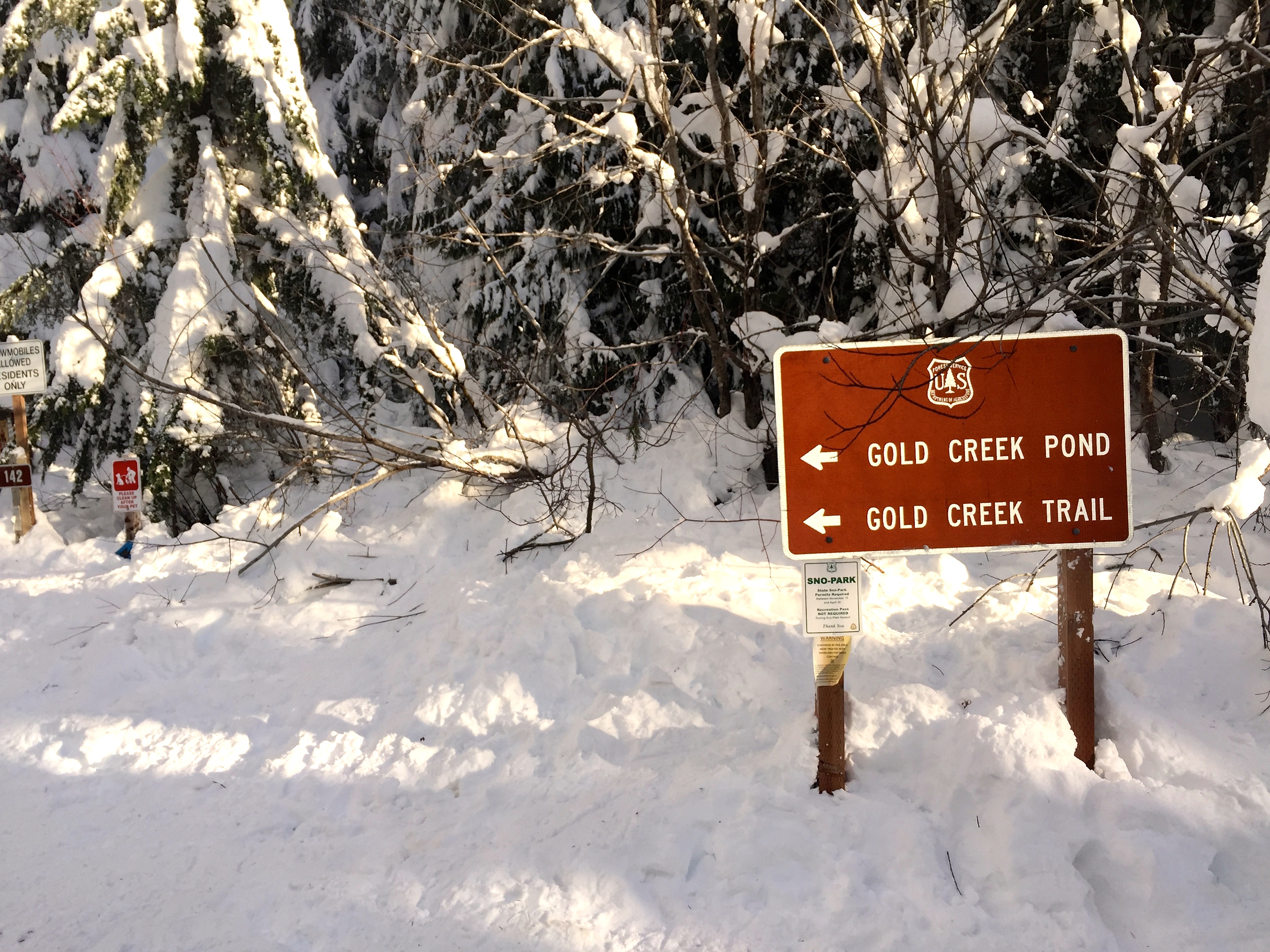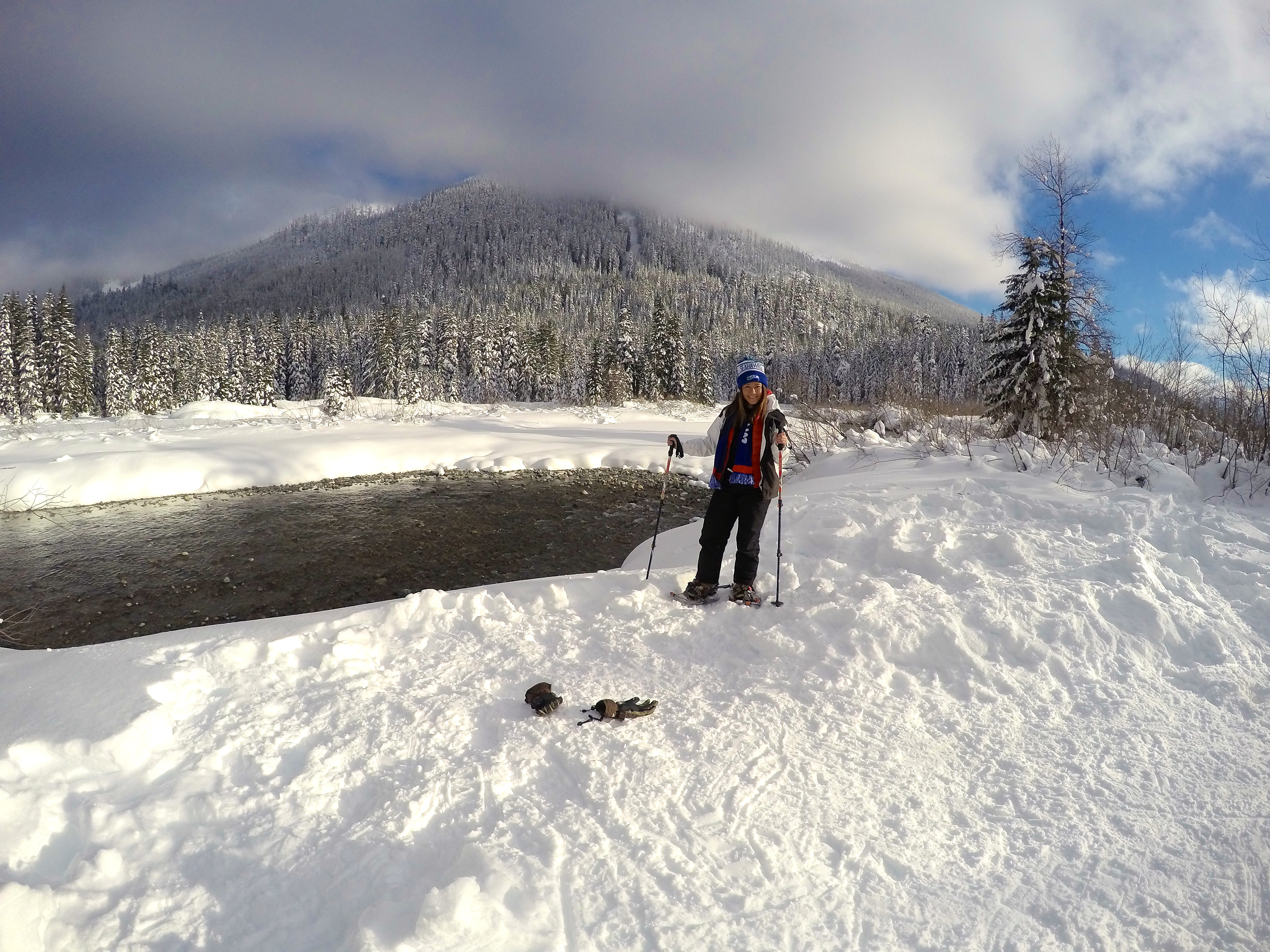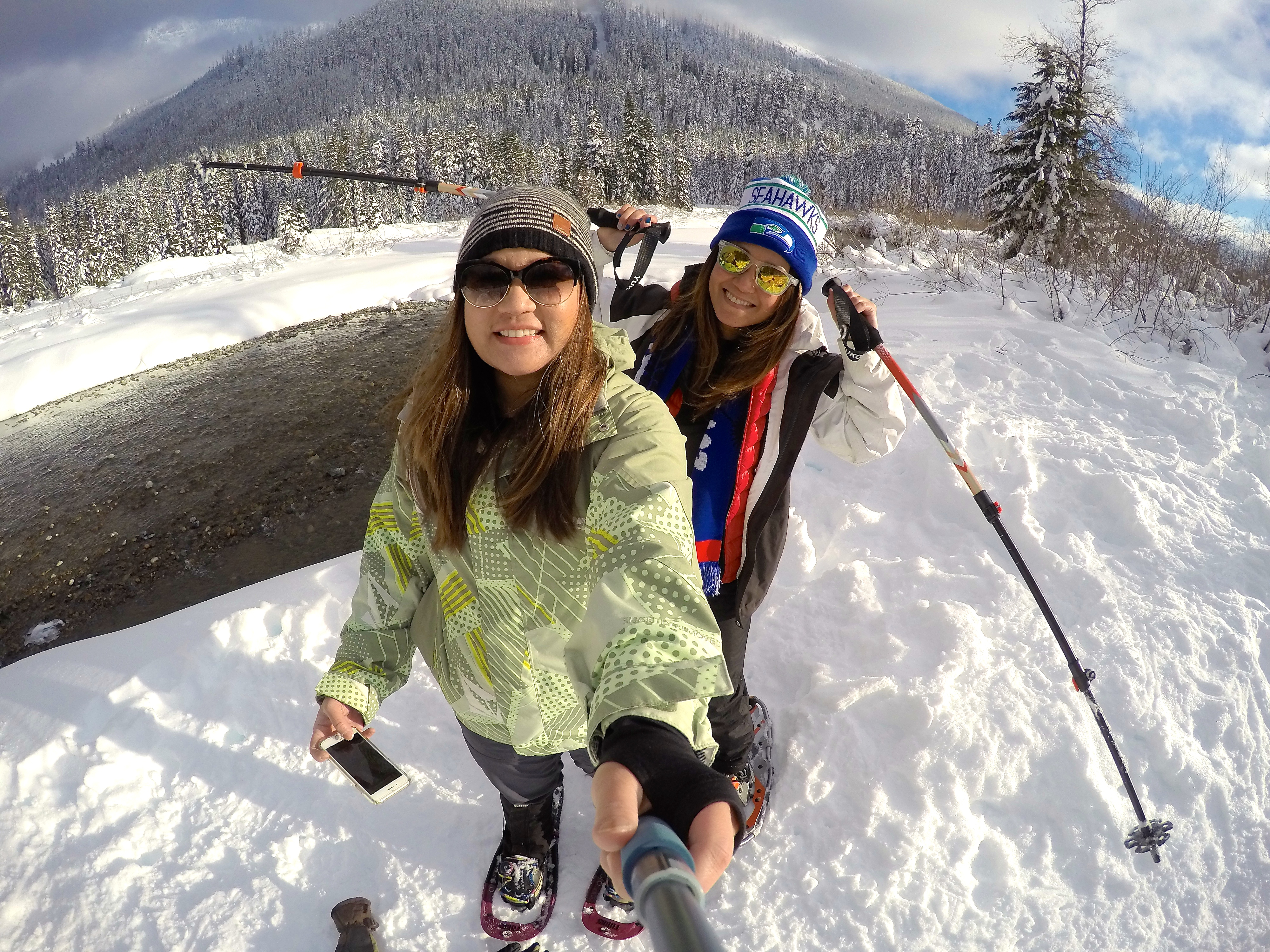 Finding parking was a bit of a challenge since we went later in the day, but eventually we scored a sweet spot. After gearing up we started heading towards what we thought was the beginning of the trail but only to find ourselves amidst a cheerful crowd of snowshoers, skiers, and families with children sledding down hills. After two hours of snowshoeing, we never found Gold Creek Pond. It was nearly impossible considering all the different trails there was. I can’t complain tho – thanks to the sun I was pretty warm!!!