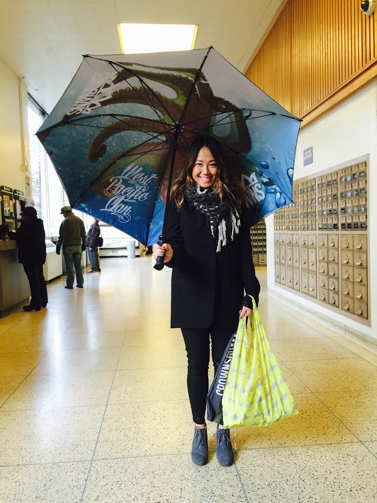 Marveling: at my new Crowns Octobrella!! a perfect accessory for the Pacific Northwest! thanks sis, I love it!