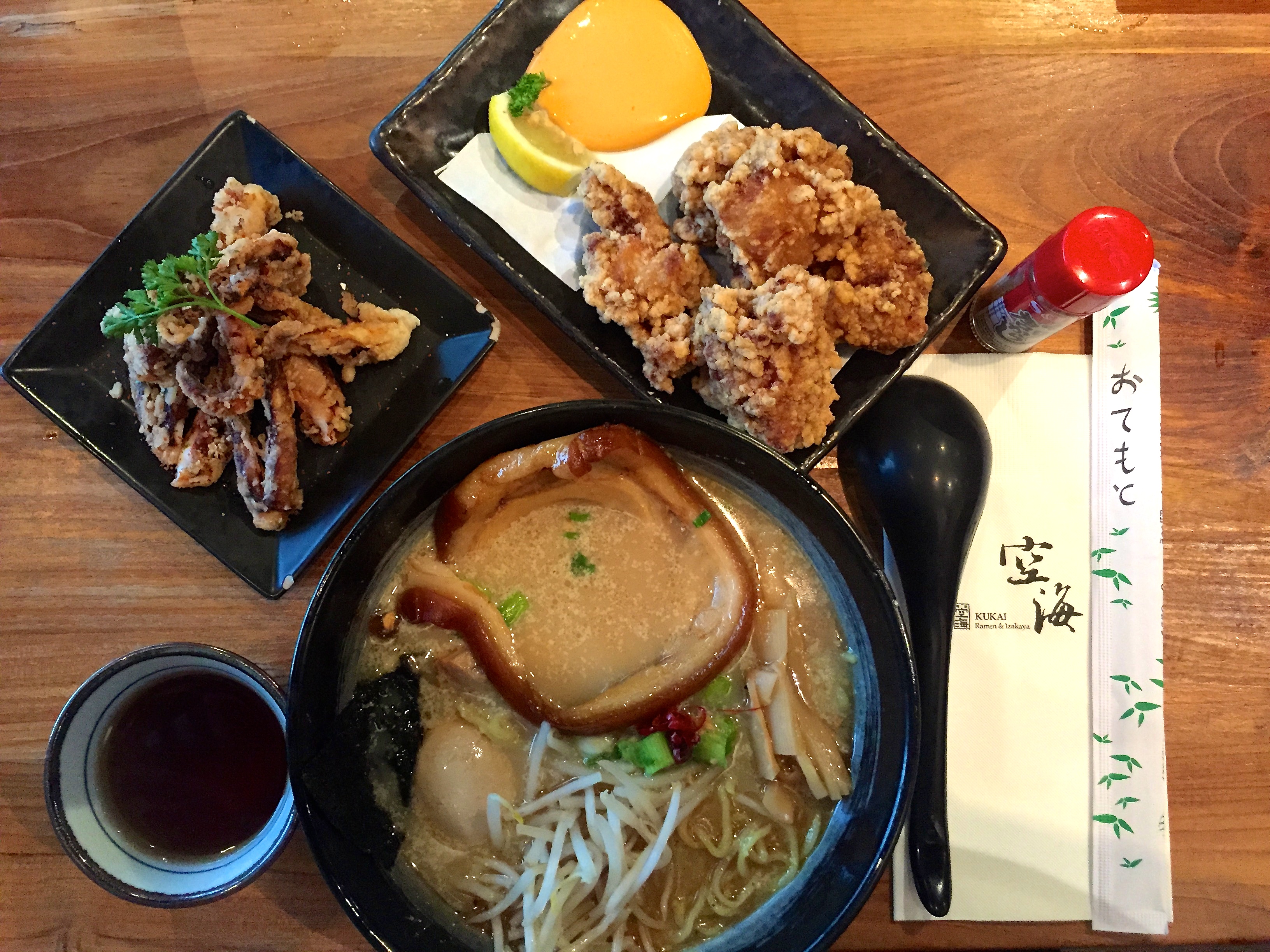Kukai Ramen & Izakaya is true to the Japanese theme where they loudly greet you as you enter and leave. Location is very easy to find, it’s in a shopping complex on Main street so plenty of parking is provided.