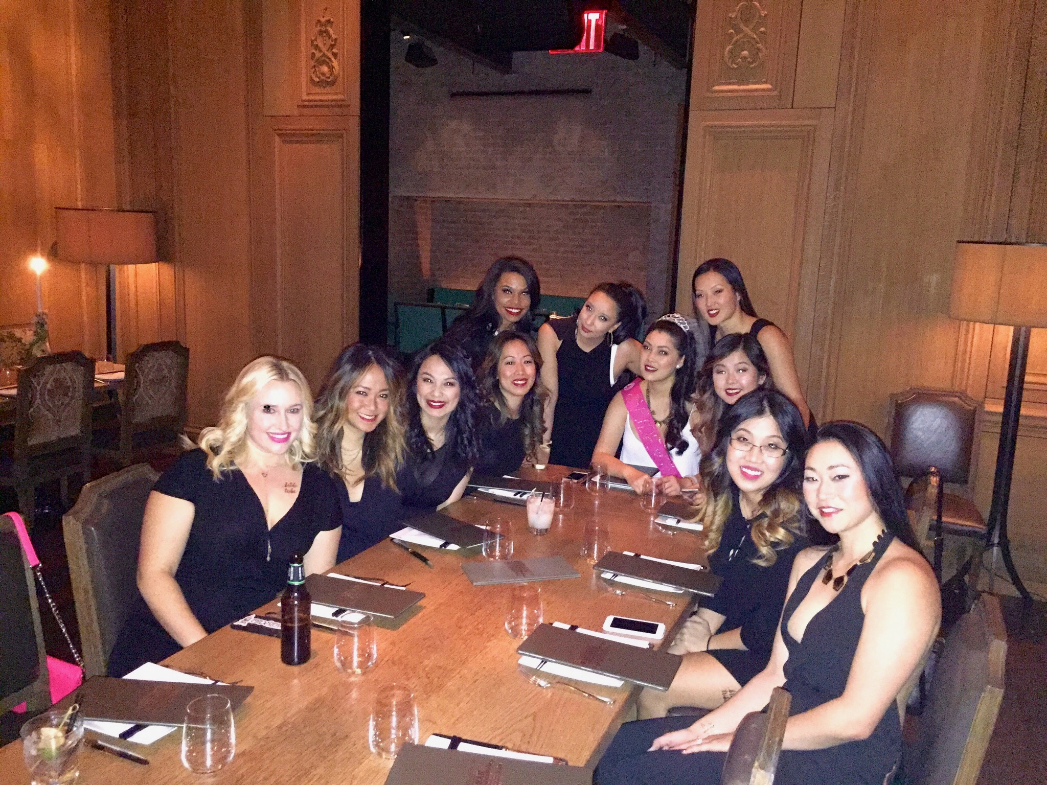 Celebrating Angela’s bachelorette, with 10 girl-friends in arm (and after walking up the four flights of stairs because the elevator wasn’t working – though props for the show putting up fun signs along the way), we picked up our tickets at will call, got a ‘sexy’ goody-bag, order champagne, and got seated in the front row!