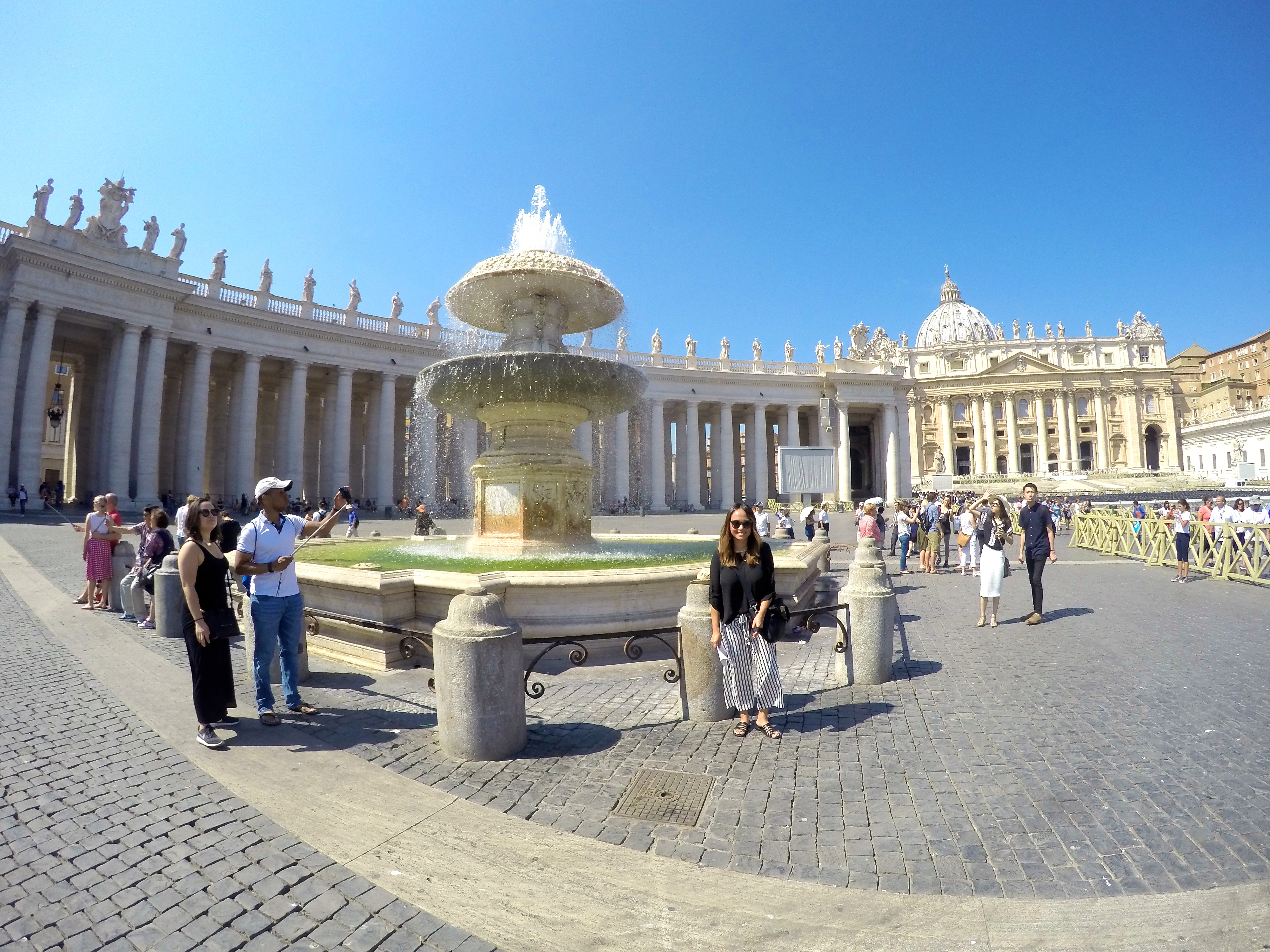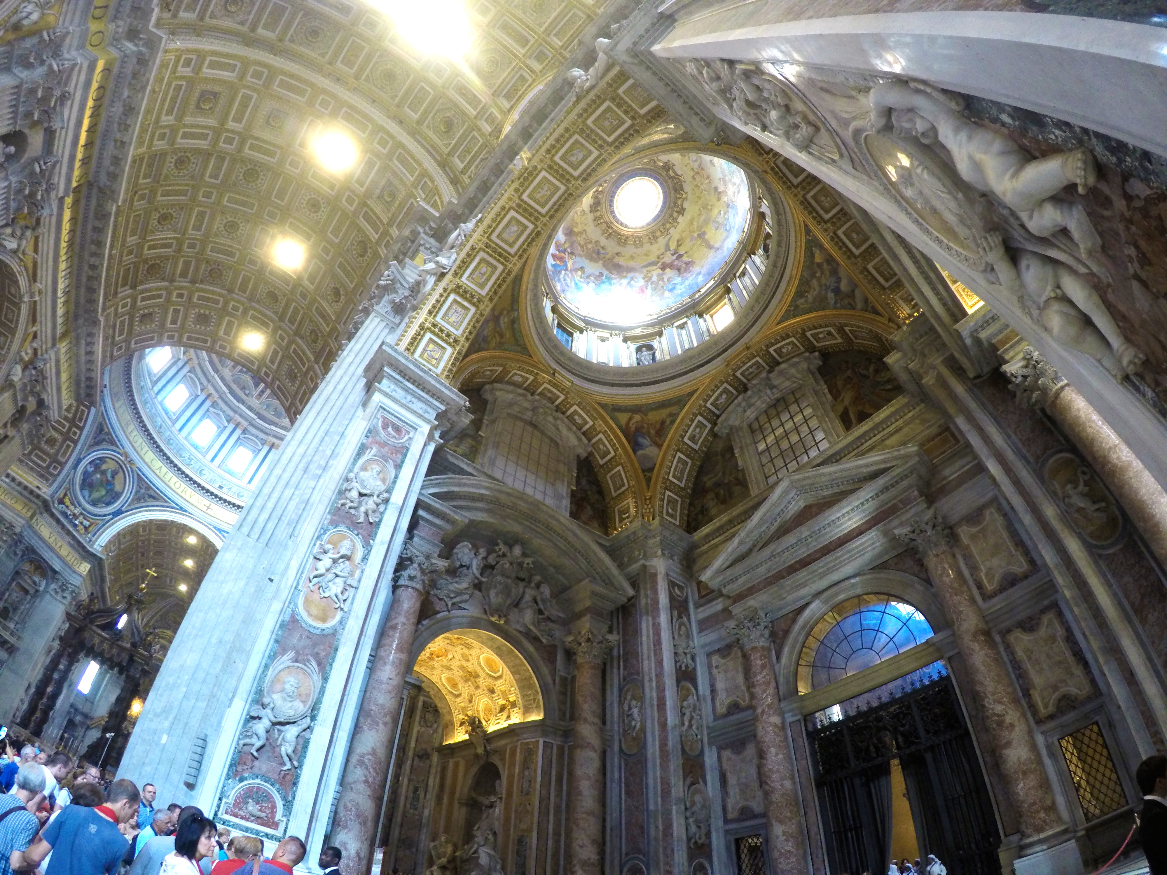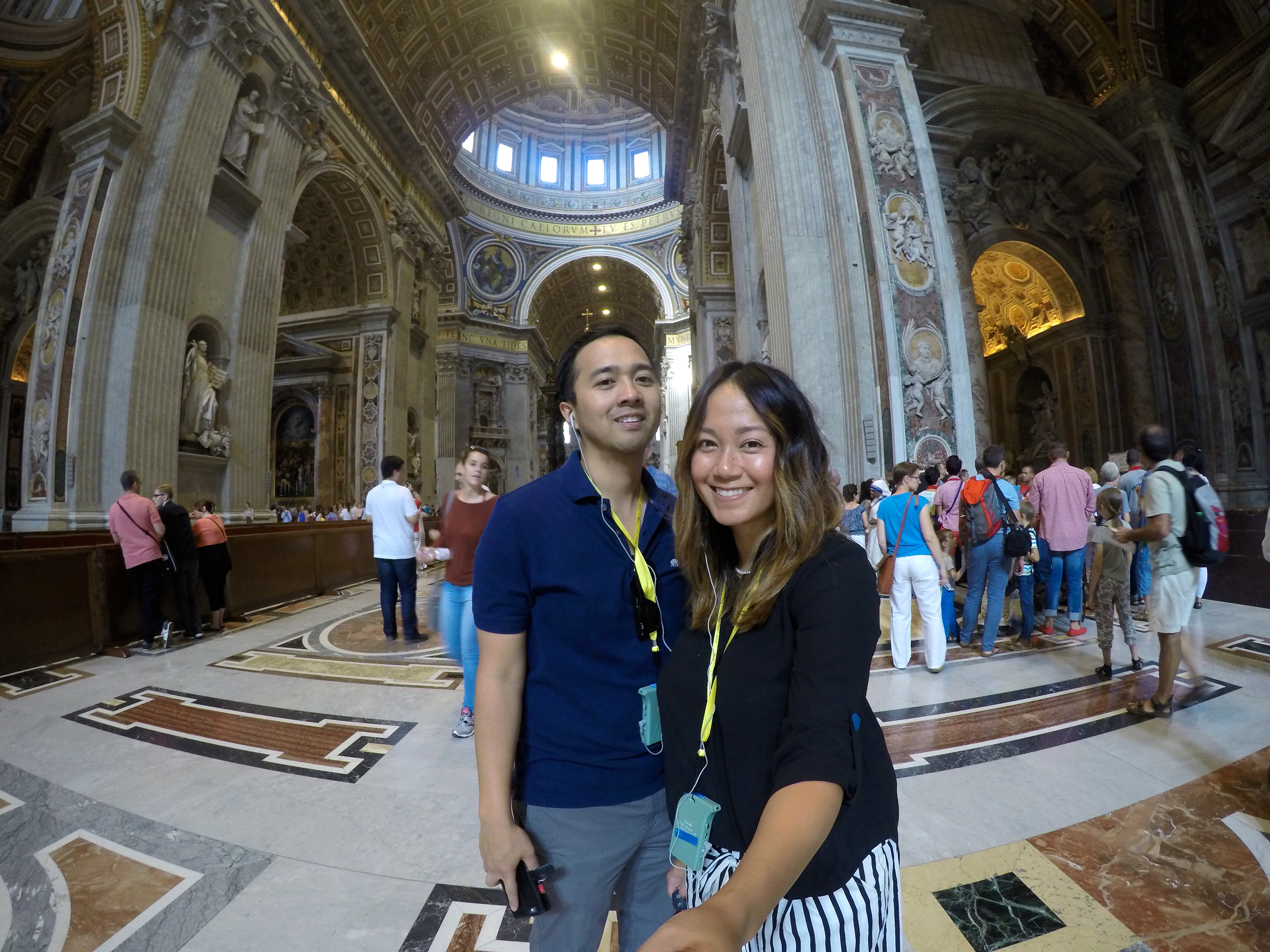 We started at St. Peter’s Basilica which is free of charge so the only line you must face is the security line and the only way to skip that insanely long line is with a paid guided tour…which we did and we highly recommend! I can’t even begin to describe how insanely BEAUTIFUL St. Peter’s Basilica is. It was breathtaking, words can’t even describe the feeling it gave me and the beauty of it – it was the single most beautiful building I have ever stepped foot into. You just have to see it to believe it. The sculptures, ceiling, altar, prayer halls, mosaic floor, bold pillars, decorations … everything is intriguingly marvelous.