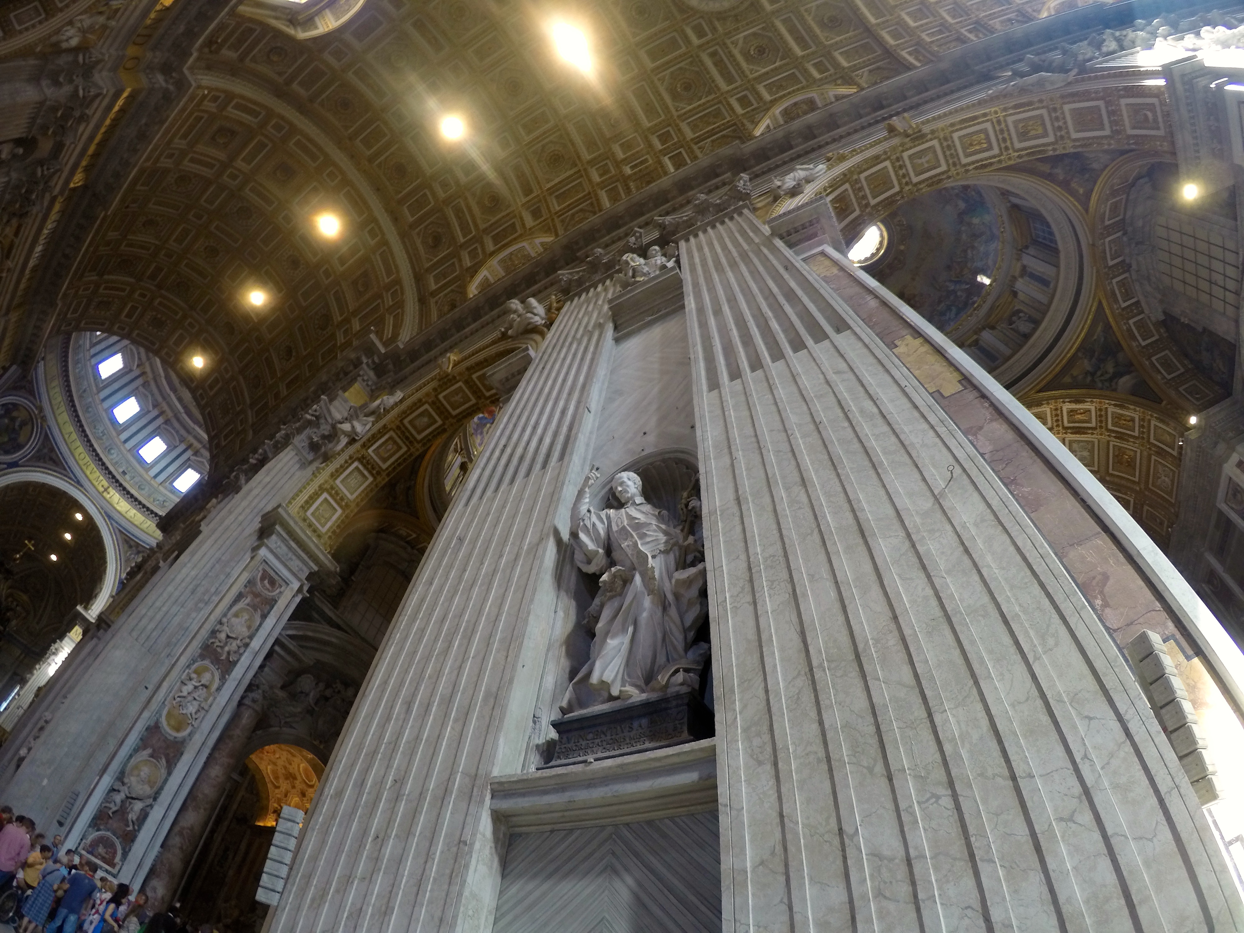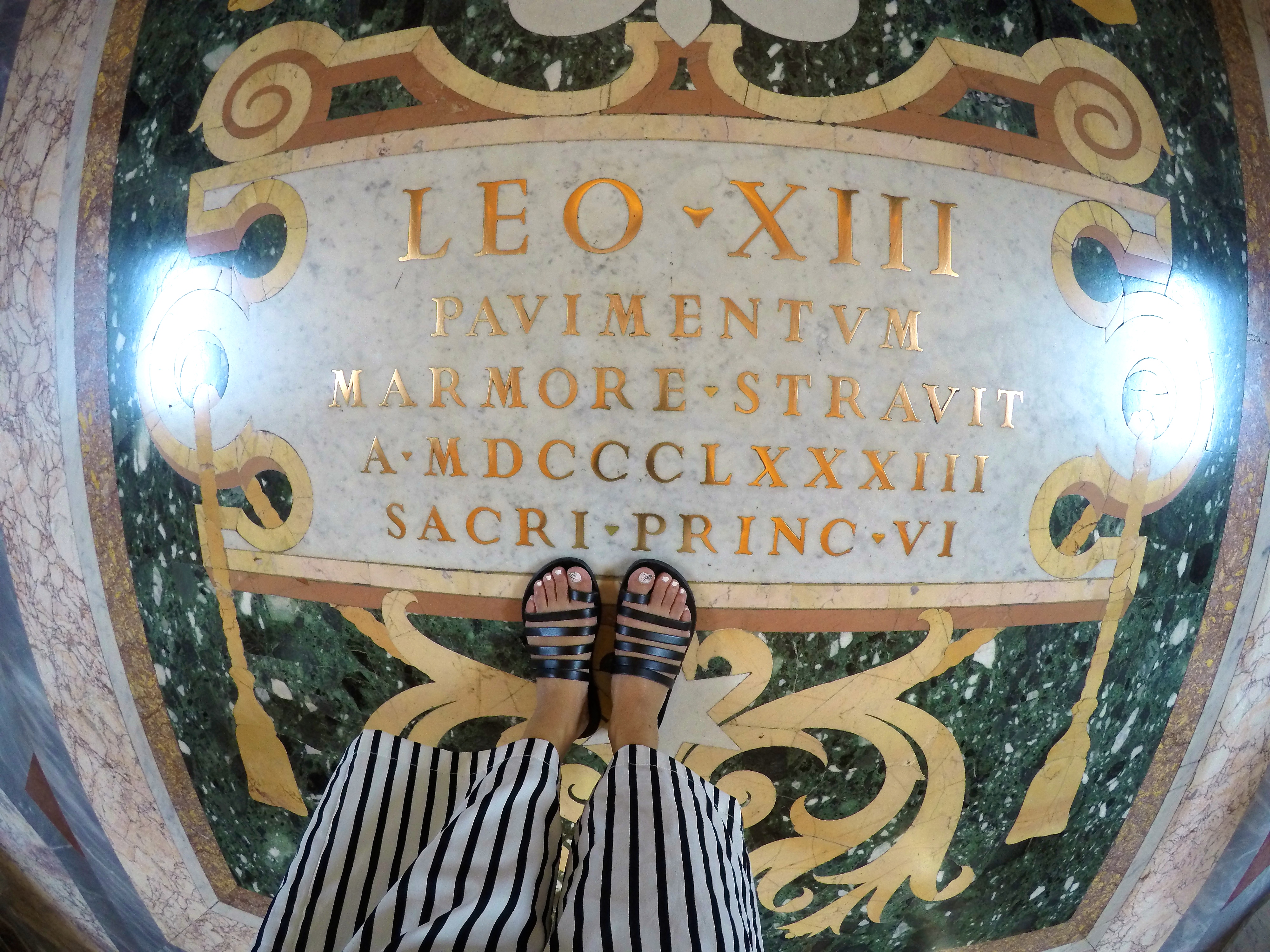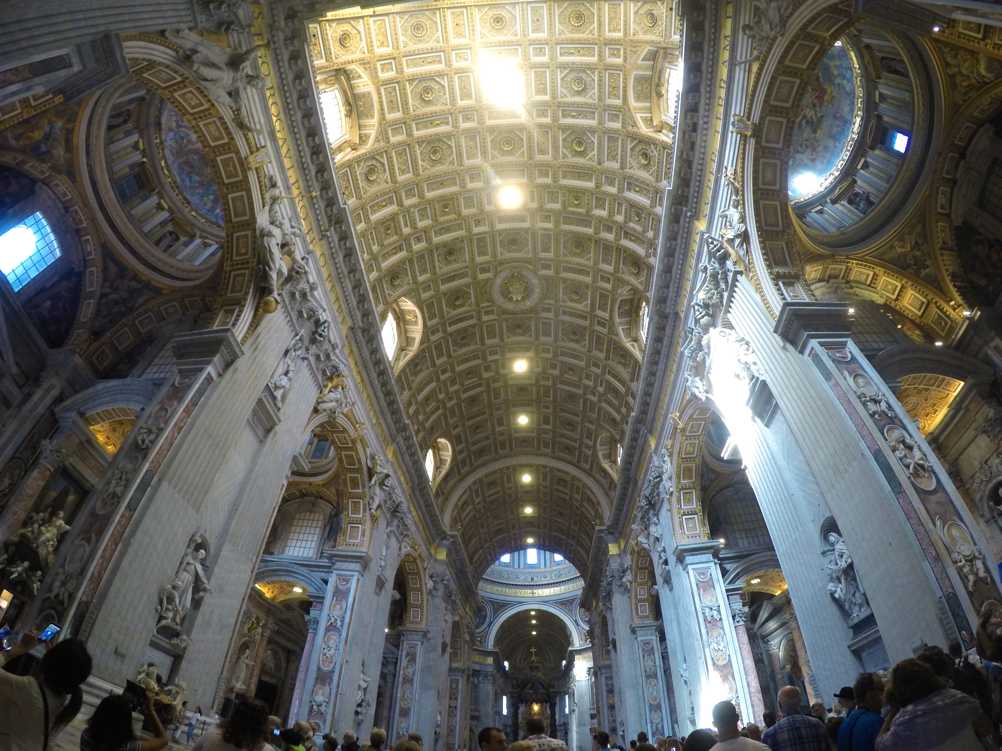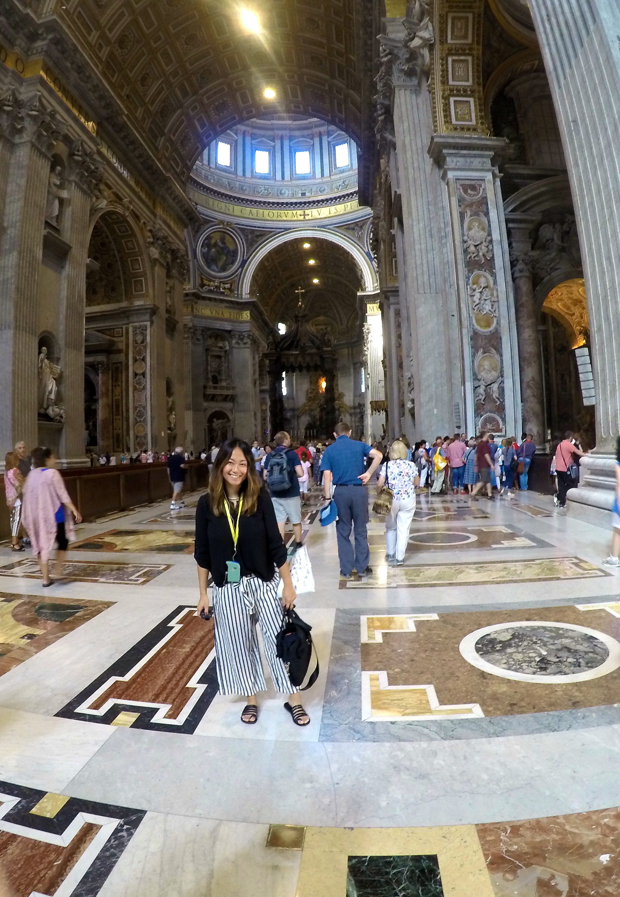 We started at St. Peter’s Basilica which is free of charge so the only line you must face is the security line and the only way to skip that insanely long line is with a paid guided tour…which we did and we highly recommend! I can’t even begin to describe how insanely BEAUTIFUL St. Peter’s Basilica is. It was breathtaking, words can’t even describe the feeling it gave me and the beauty of it – it was the single most beautiful building I have ever stepped foot into. You just have to see it to believe it. The sculptures, ceiling, altar, prayer halls, mosaic floor, bold pillars, decorations … everything is intriguingly marvelous.