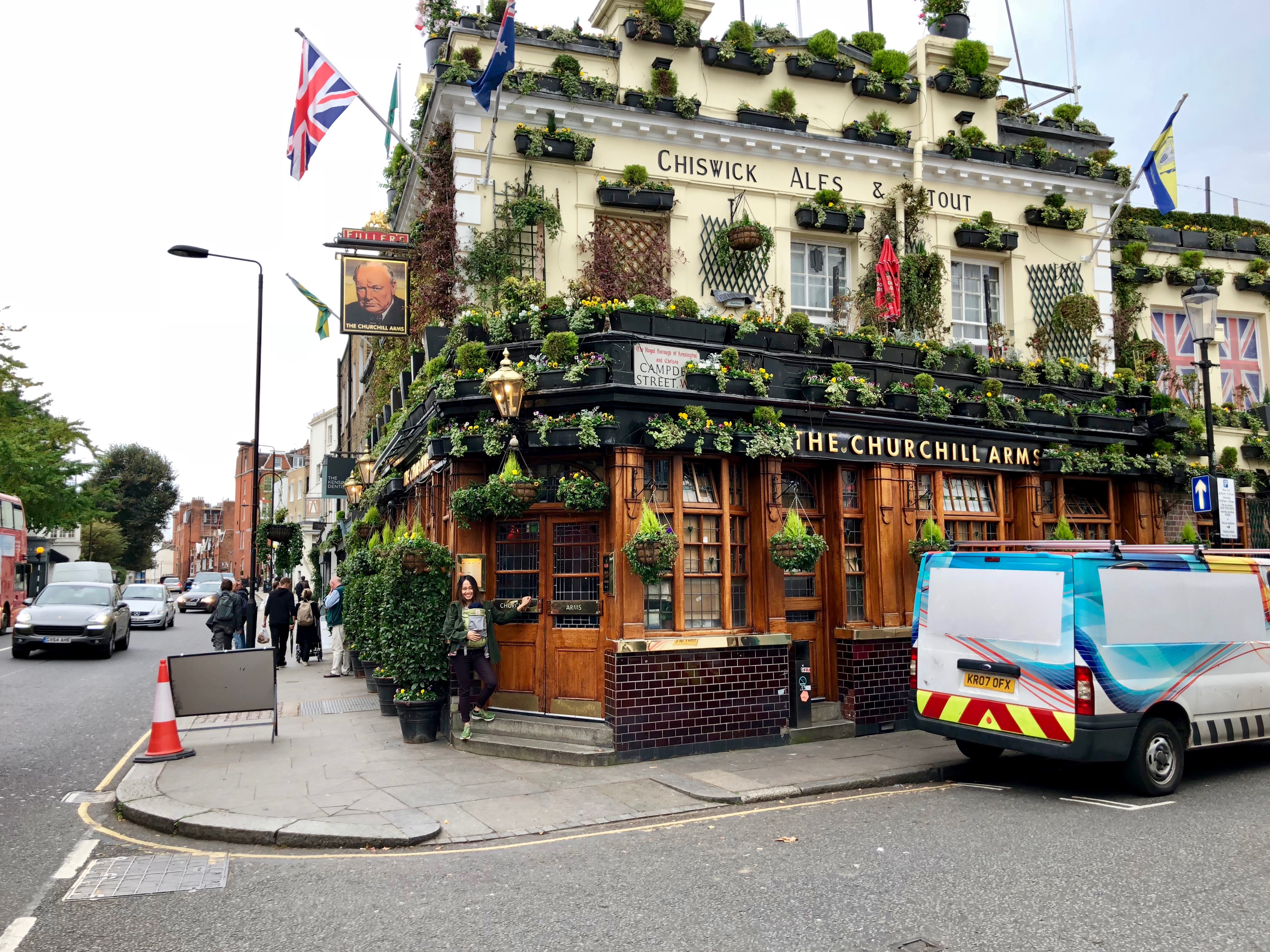 Then went back into the tube and headed to Notting Hill to have a delicious Thai lunch and a nice cold beer at the famous Churchill Arms! Not only is the outside decorated but the inside is filled with London/Churchill-centric memorabilia and you guessed it…more flowers! This has got to be the prettiest pub in all of London!