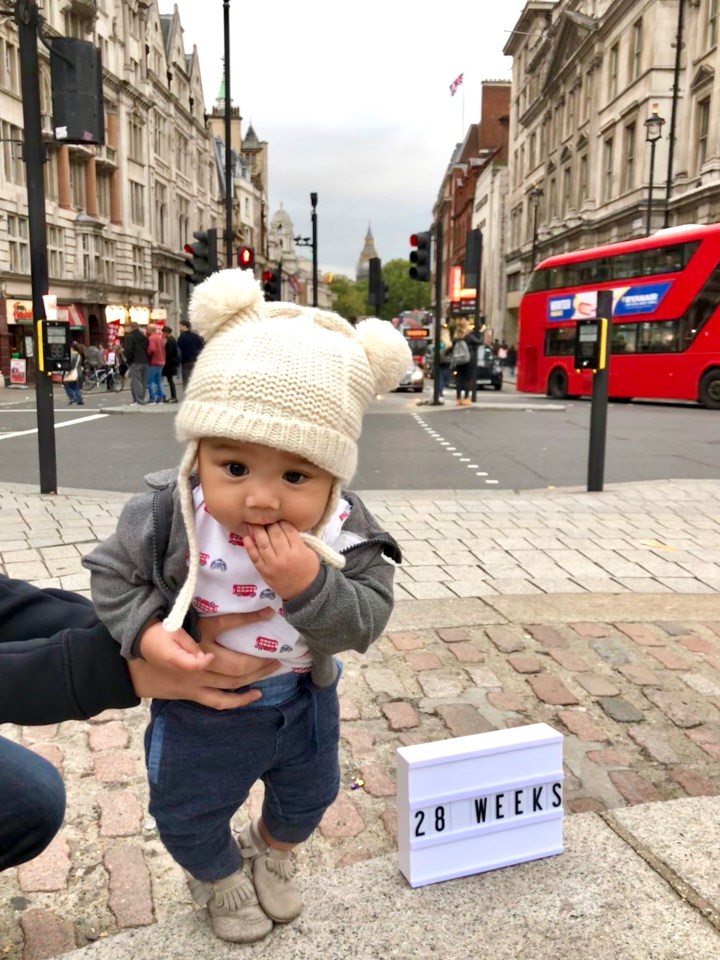 Avery turned 28 weeks and regardless of where we are I have to take his weekly photo with the light up box.