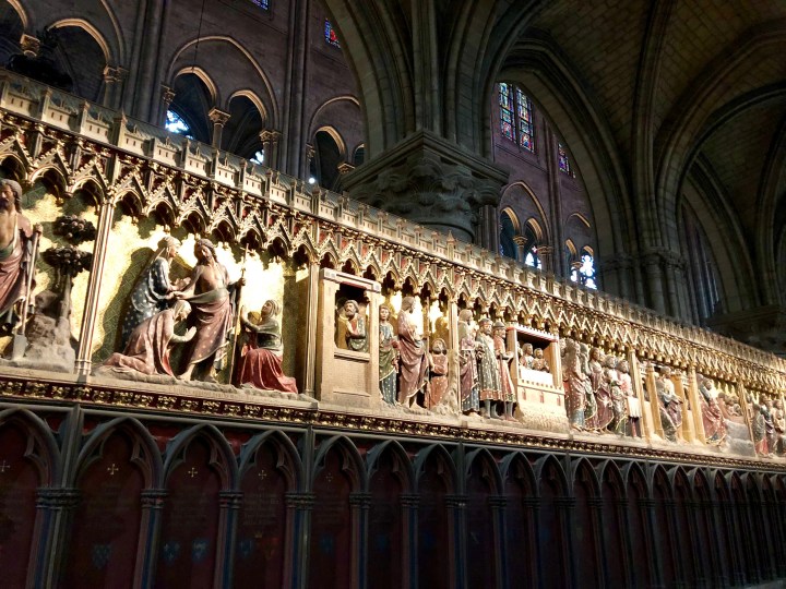 Notre-Dame Cathedral was built alongside the Seine beginning in 1163. Restorations and alterations have been made since, but the cathedral still has a similar appearance to when it was first completed in 1345. The pointed spires and flying buttresses on the outside of the cathedral are common to many churches built in the Gothic architectural style, but what I think sets Notre-Dame apart, and really any church for that matter, are the smaller details – the statues, carvings, and sculptures that tell the church’s stories.