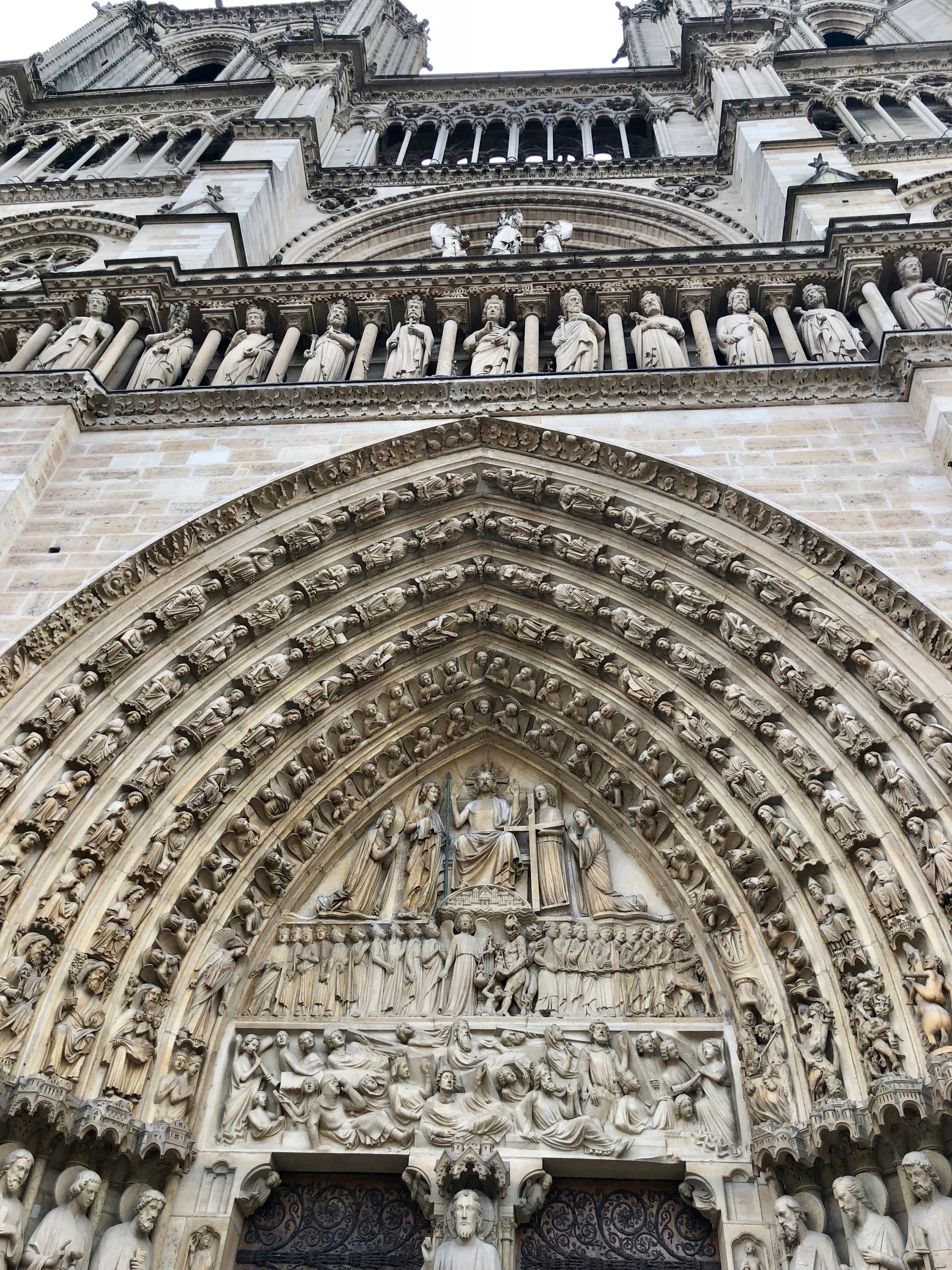 Notre-Dame Cathedral was built alongside the Seine beginning in 1163. Restorations and alterations have been made since, but the cathedral still has a similar appearance to when it was first completed in 1345. The pointed spires and flying buttresses on the outside of the cathedral are common to many churches built in the Gothic architectural style, but what I think sets Notre-Dame apart, and really any church for that matter, are the smaller details – the statues, carvings, and sculptures that tell the church’s stories.