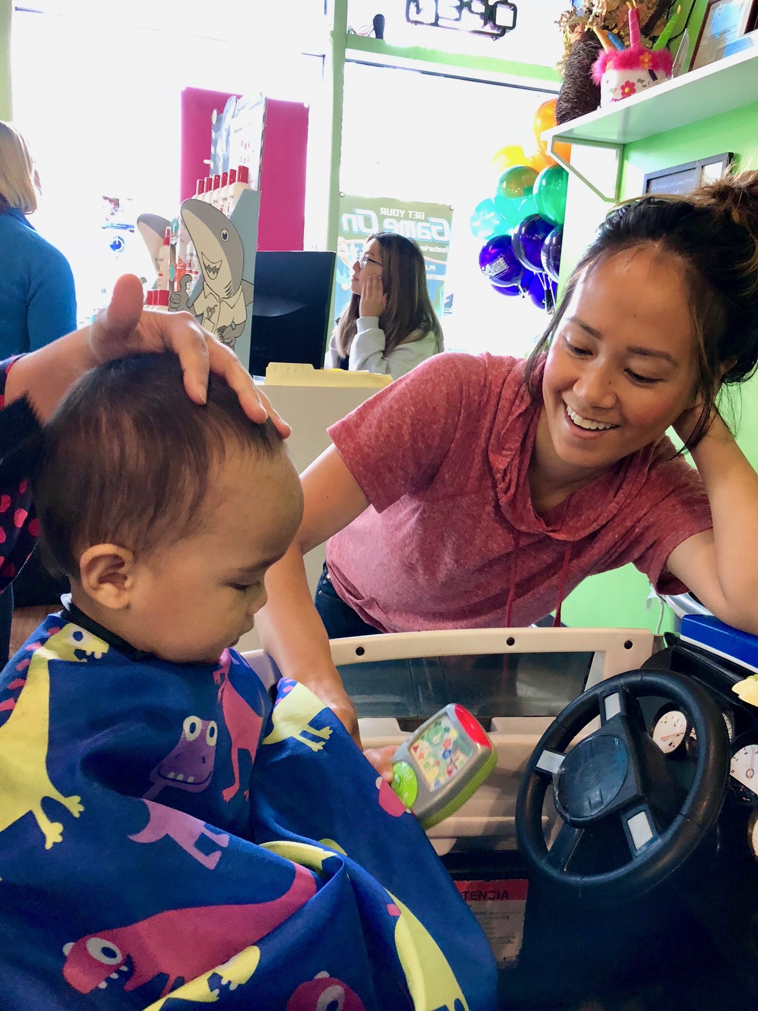 Avery did amazing the entire time. He only got a little antsy toward the end because of all the hair falling on him. And honestly, I think the haircut made him look like when he was a baby. Instead of making him look like a “bigger” kid, he reminded me of the 4 month old he once was!