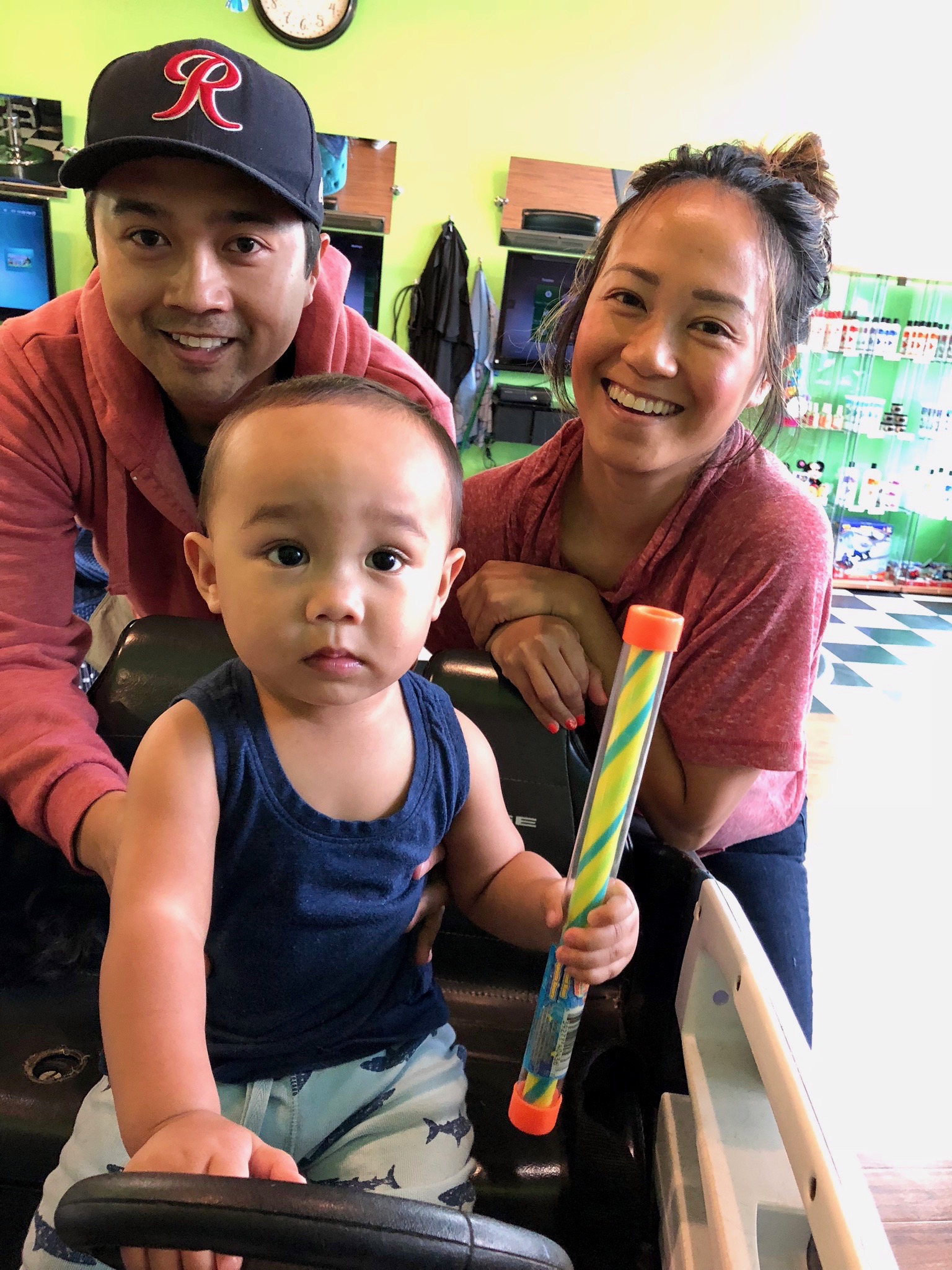 On the drive there, I kept looking at him and savoring his baby mullet. After we put him in the seat, the stylist asked me what exactly I wanted. At first, I told her I just wanted to trim everything … but don’t take too much off. But since it was the summer, Andre said we should just really go all in! After all, it’ll grow back….Thicker, he said! So I conceded.