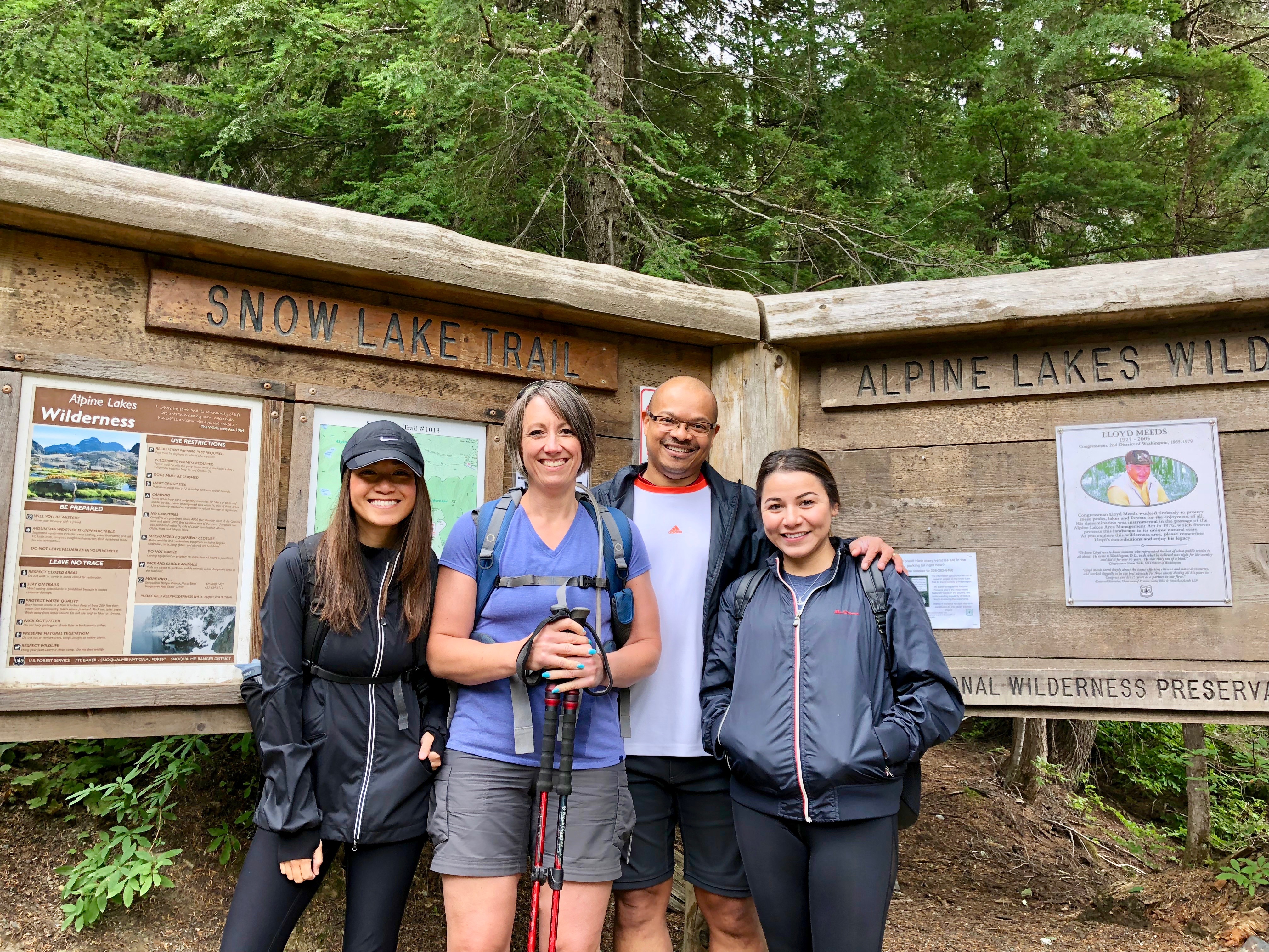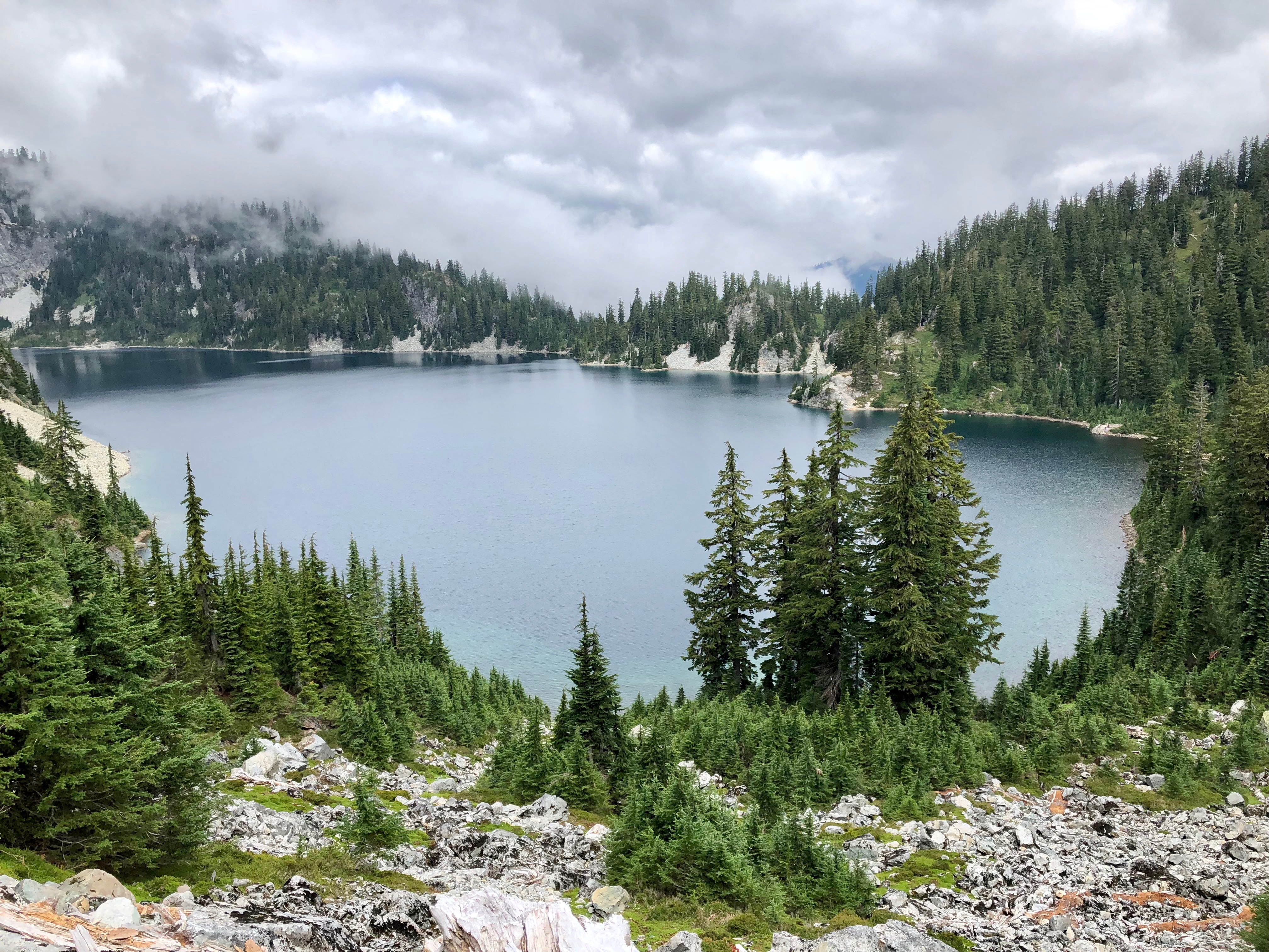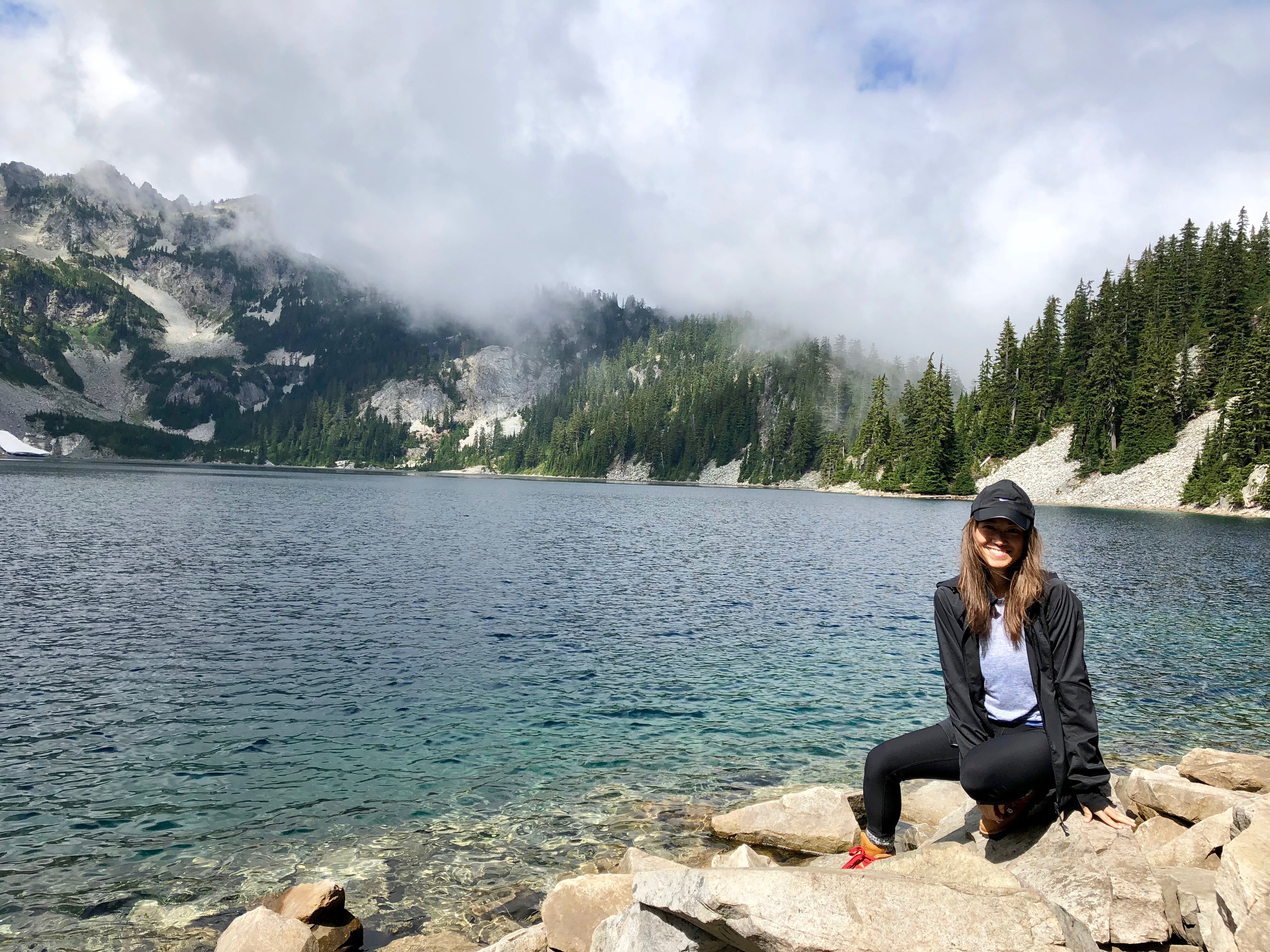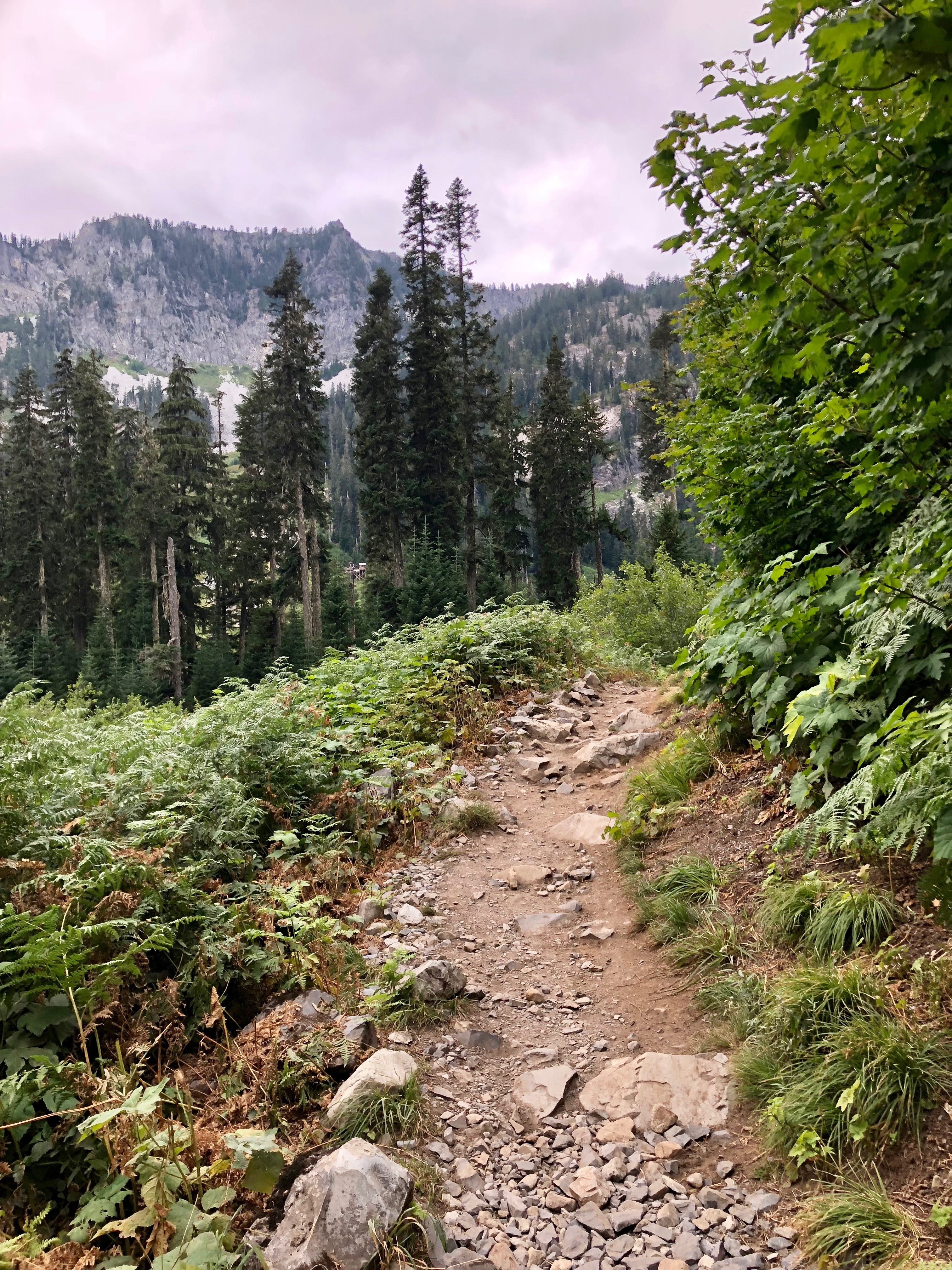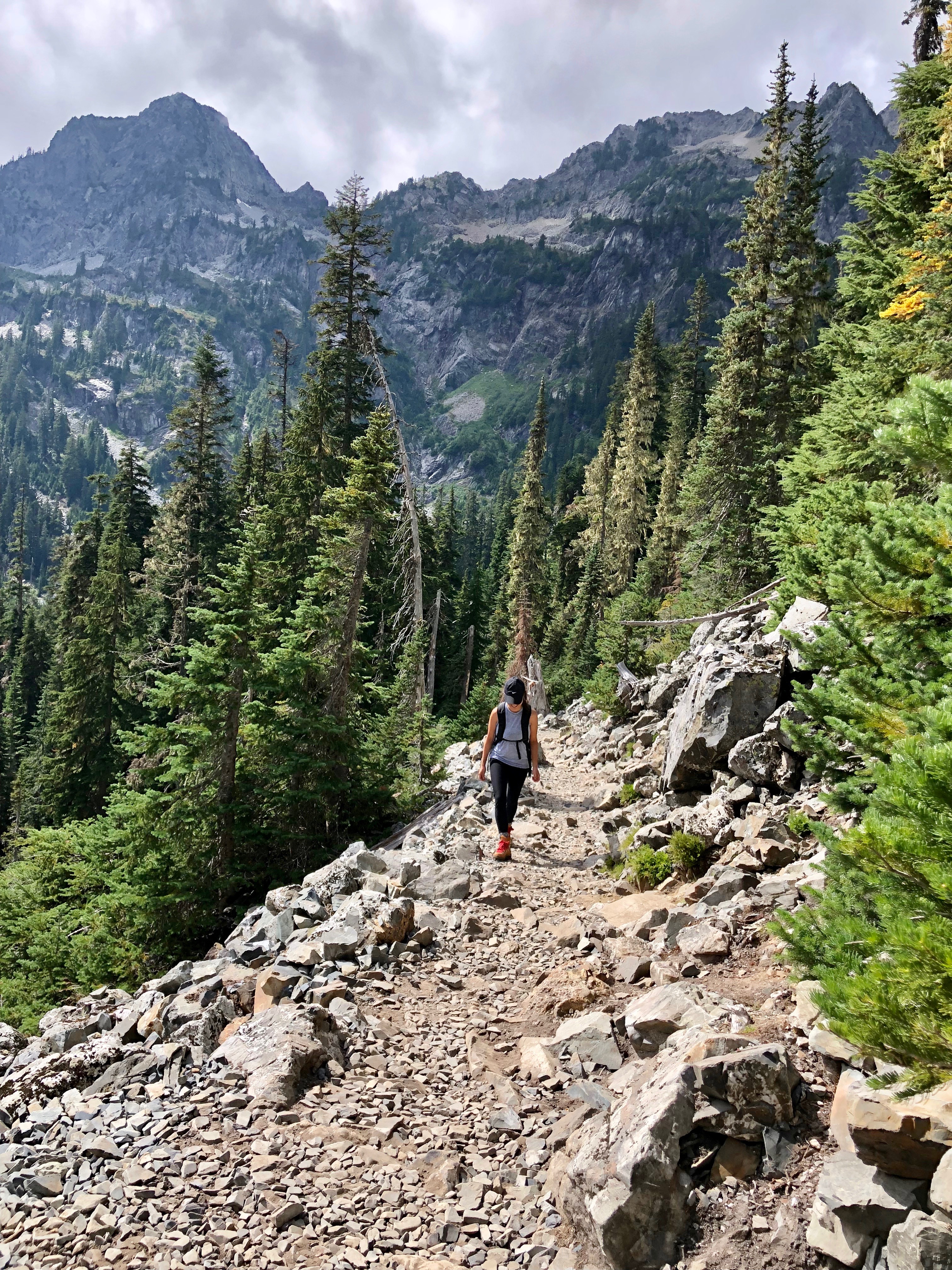 Snow Lake became the destination despite holding the title of most visited lake in the Alpine Lakes Wilderness. I’ve done Snow Lake before but never made it all the way to the lake because – funny I should mention this, but there was just TOO MUCH SNOW! There was no way down without someone hurting or possibly killing themselves. So this was one of those hikes that felt like I still needed to check off my list. Starting off the hike and man – I don’t recall having to share the trail with hundreds of humans and dozens of dogs! I had a brief moment of silly frustration over the congested trail and then recognized I needed to jump off my high horse quick. Of course everyone else was going to be hiking to a lake on a gorgeous 80 degree PNW day. Did I really expect anything less? The situation was perfect as is. We should all be outside and enjoying the mountains. And everyone we passed were so nice and obviously elated to be outdoors.