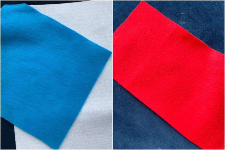 For the bib, I used a light blue felt and cut a hole for the neck. I then added a strip of white felt around the bib. I placed 4 round velcro to the back of the blue felt and place the exact same on the neck of the white long sleeve – that way it would stay still and not move around to much.