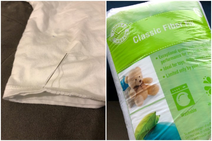 The key to this costume was the PUFF factor. It was trail and error trying to figure out the right sizing. After many trips to Target & Old Nayy, I went with size 18 months and a size 2T for the leggings. For the top I went with a size 3T and a 5T since I wanted a more looser fit. The reason for the 2 sizes is because you will line & sew them together; the smaller size on the inside and the larger being on the outside. Make sure you leave an opening so that you can stuff it to your liking.