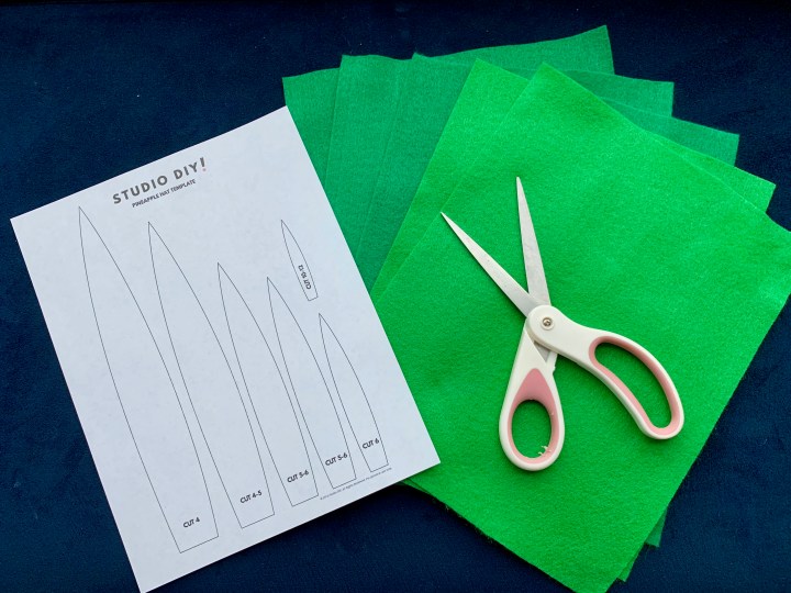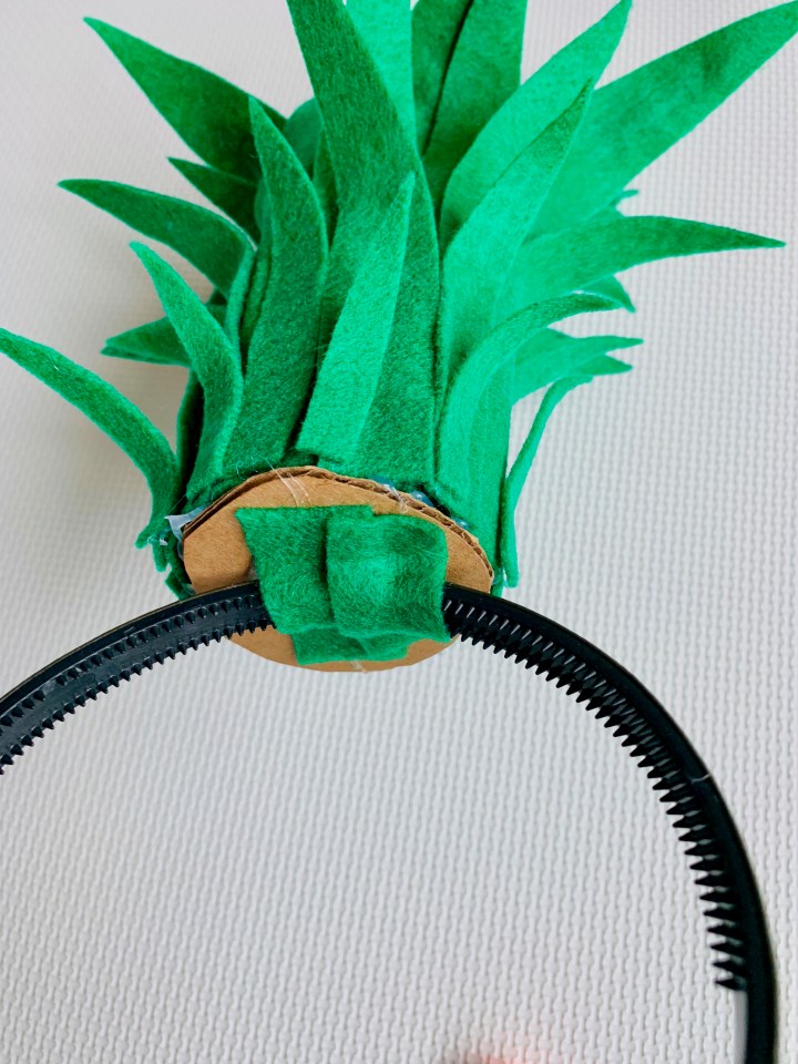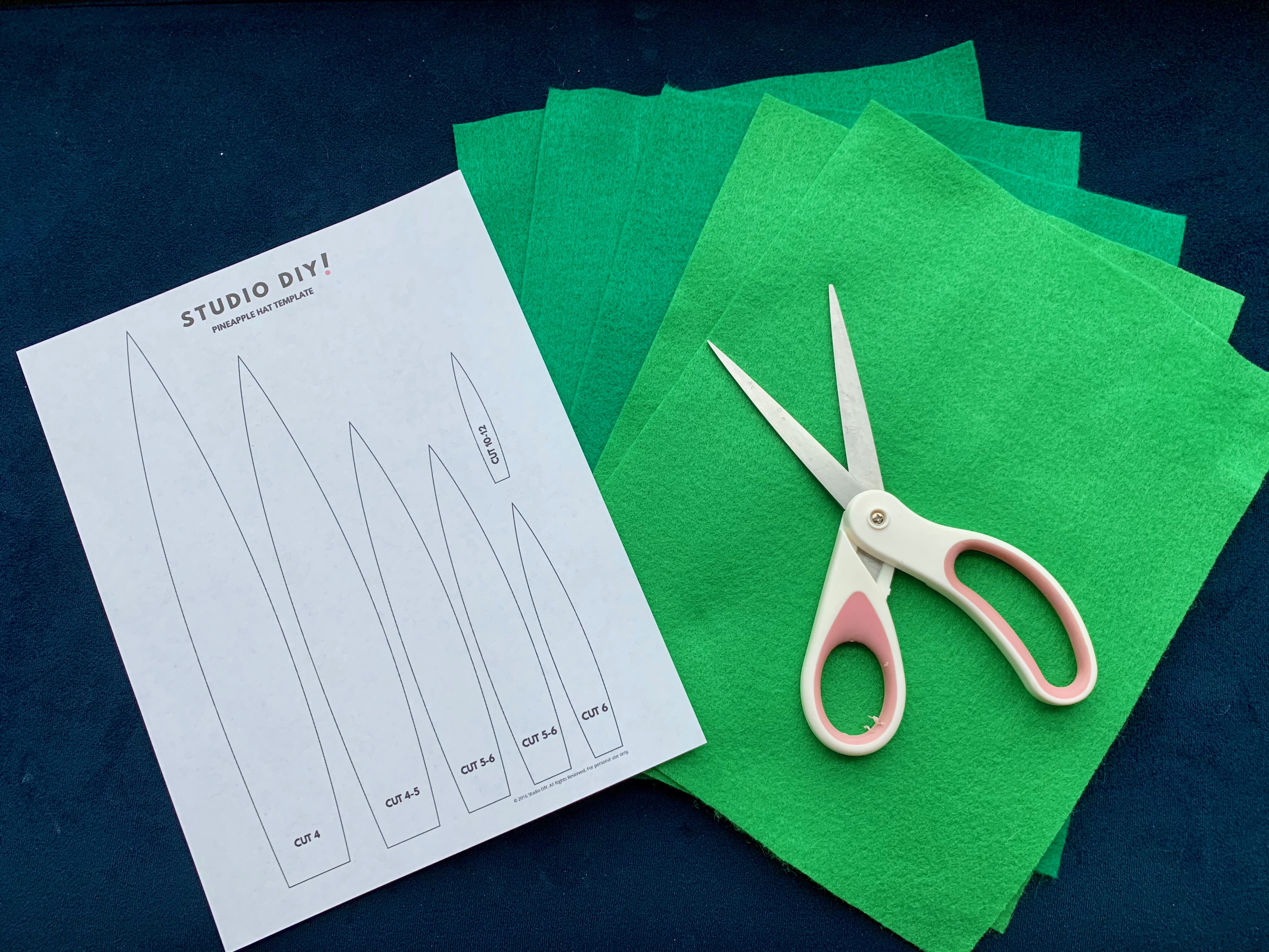 While doing a quick google search, I came across a leaf sprout template from Studio DIY and use that as my pineapple crown!