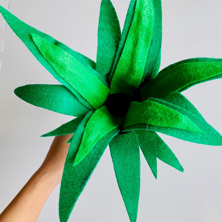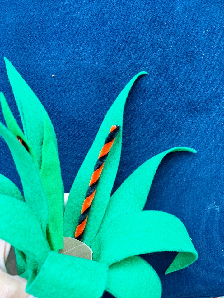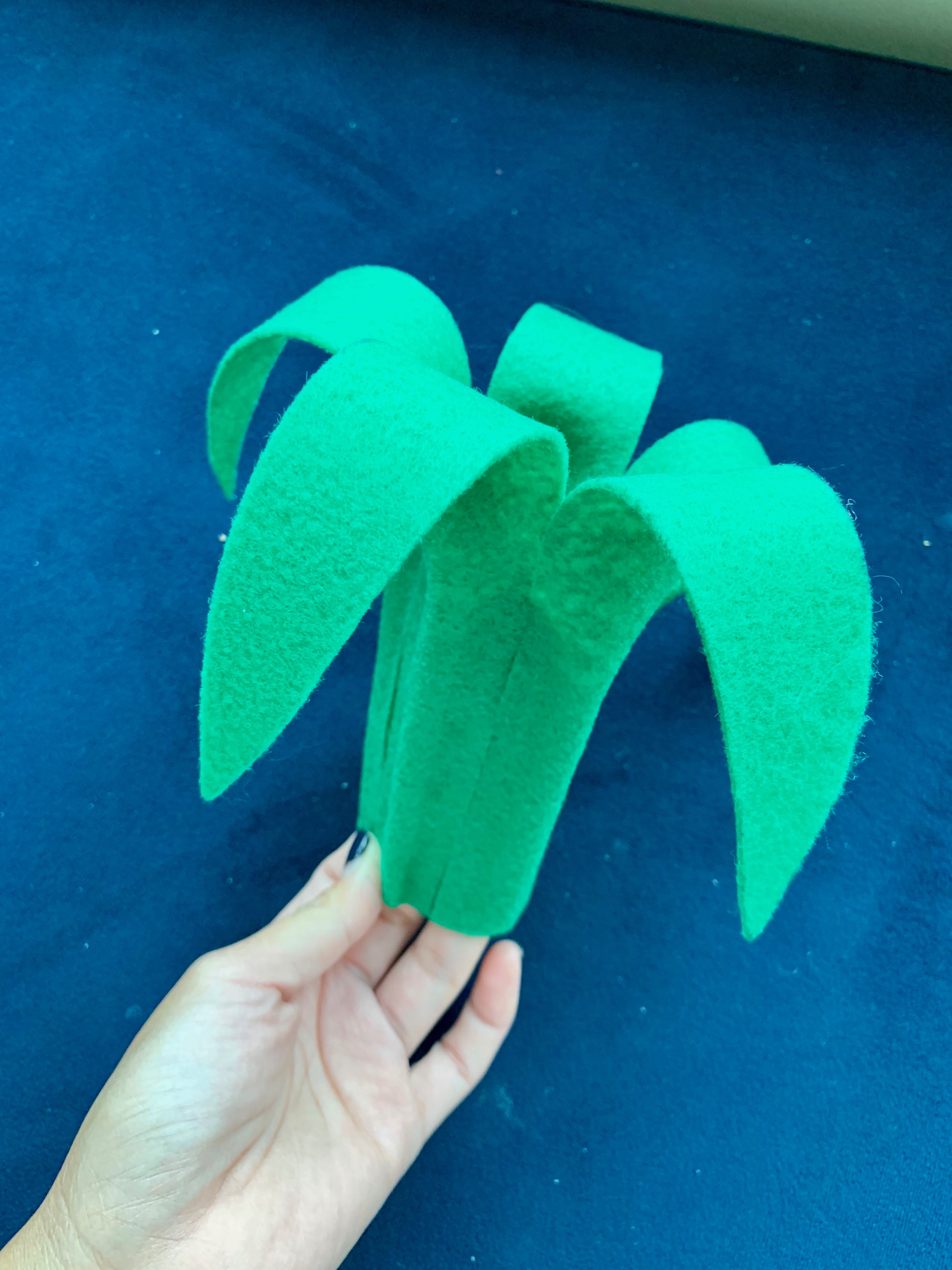 Since my top leaves were getting pretty floppy, I added some wires that I had lying around and use those to keep the largest leaves from flopping over. I also covered them with felt since I didn’t want them to be showing.