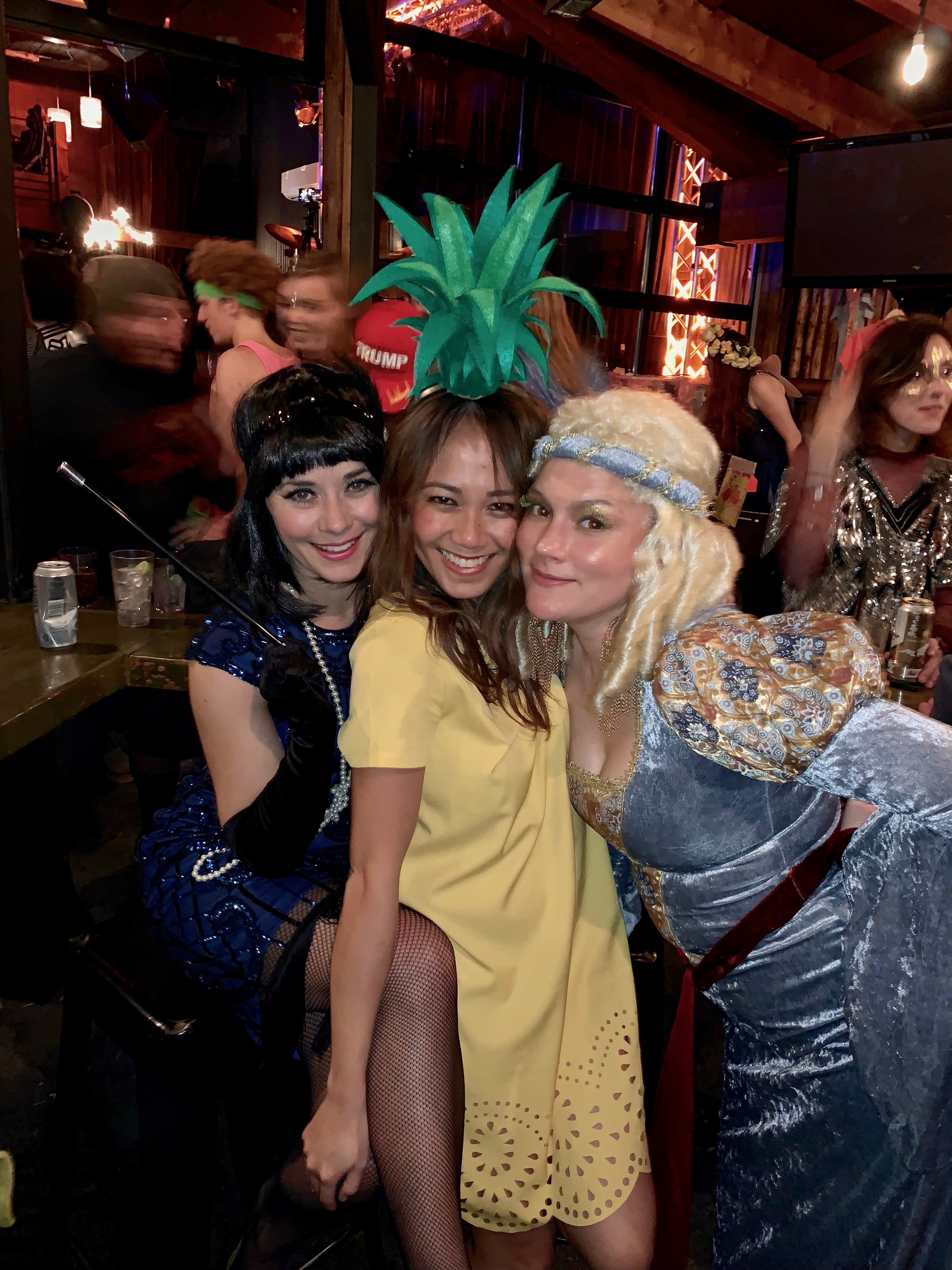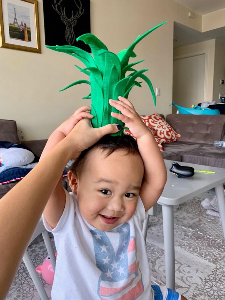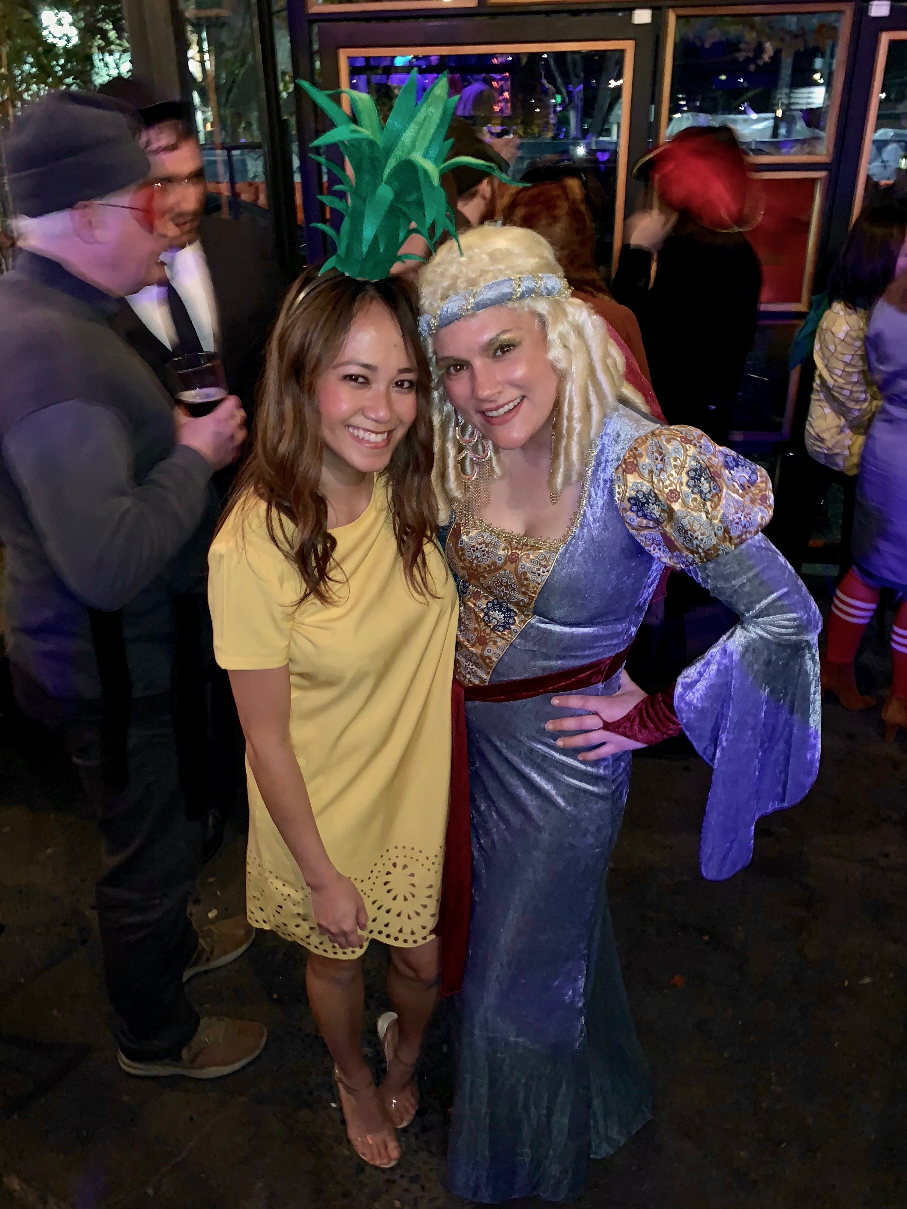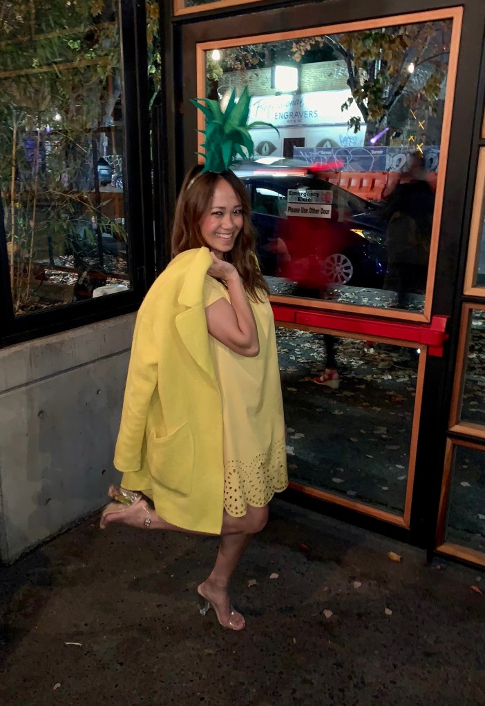 My friends and I originally wanted to do a ‘Ladies in Waiting’ group costume and when the Medieval dress that I ordered online didn’t fit to my liking, I was scrabbling for a last minute costume! And when it comes to costumes, I love super easy and simple ones – and thought a pineapple would be perfect! As the saying goes, stand tall, wear a crown and be sweet on the inside!