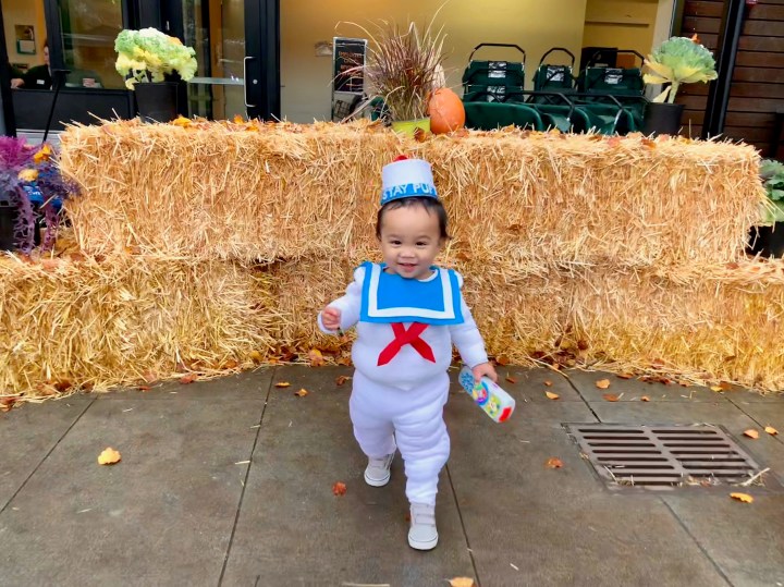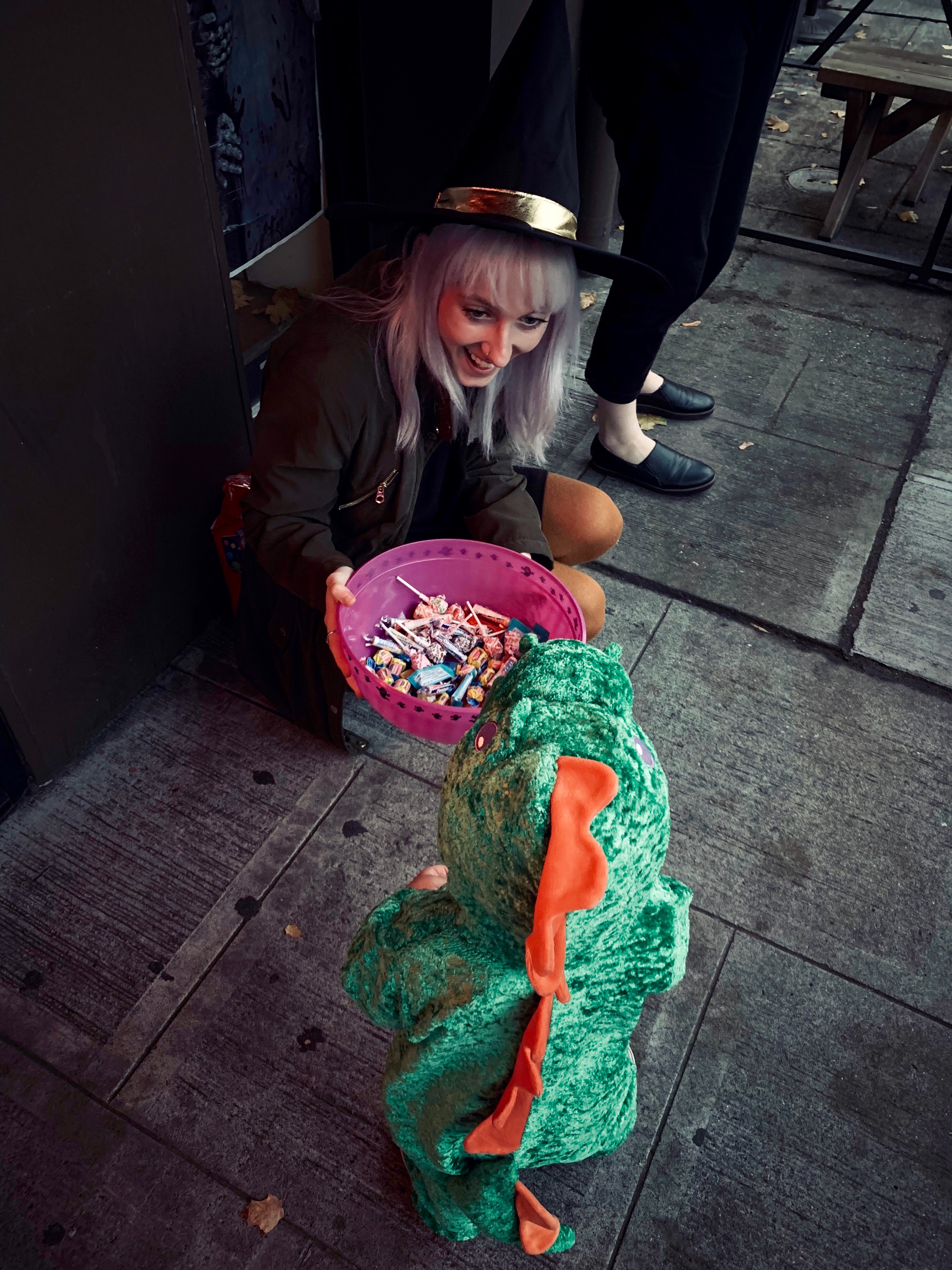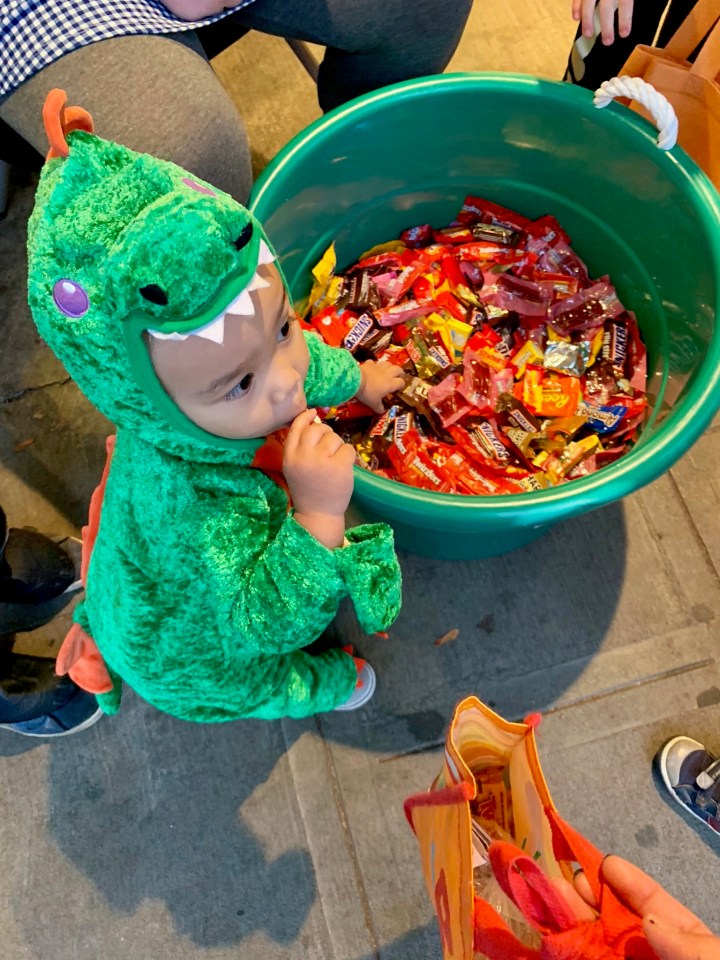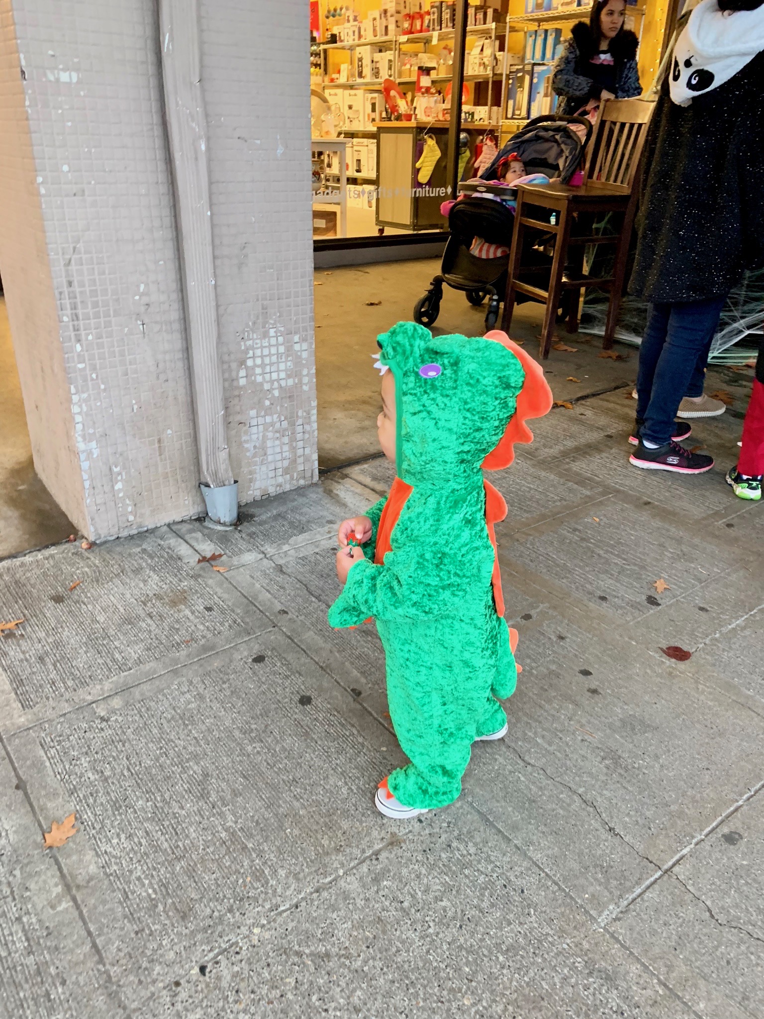 Afterwards, I took Avery to Ballard Farmers Market for his FIRST ever trick-or-treating event. I change him into a dragon cause I figure it would be much easier to move around in.