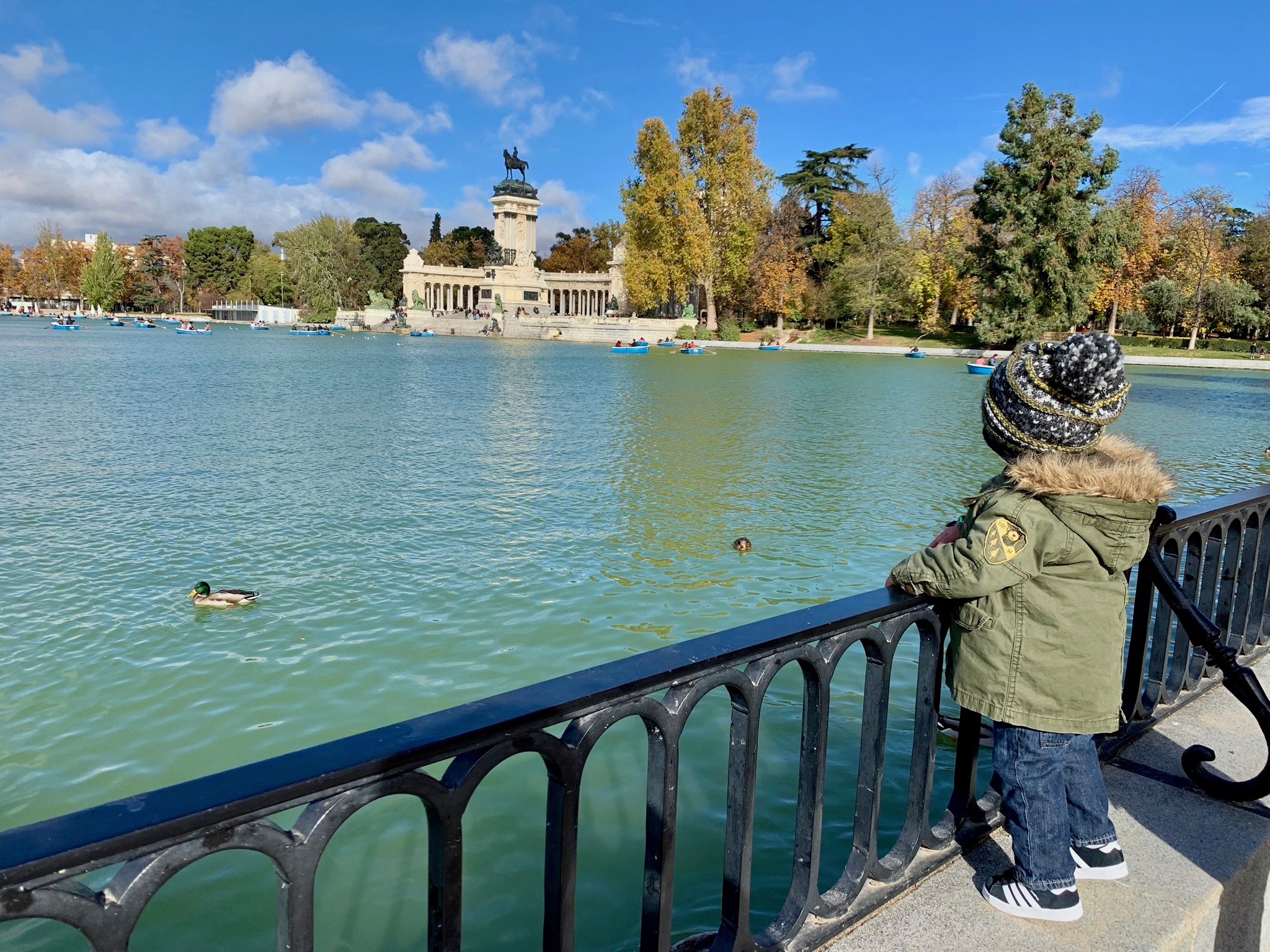 From there we caught the bus to head to the majestic Retiro Park. Madrid’s take on Central Park, walking through the scenic Retiro Park with its manmade lake is an unmissable part of any Madrid itinerary. It spans over 120 acres and includes dozens of thousands of trees. It’s one of the most popular recreational areas in the city.