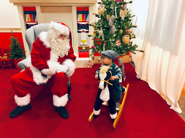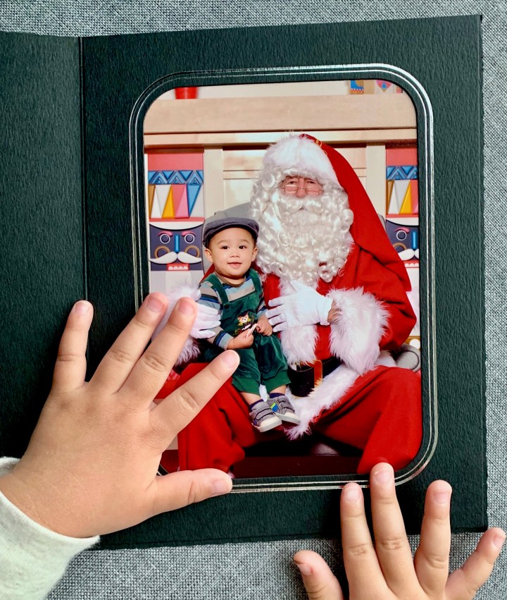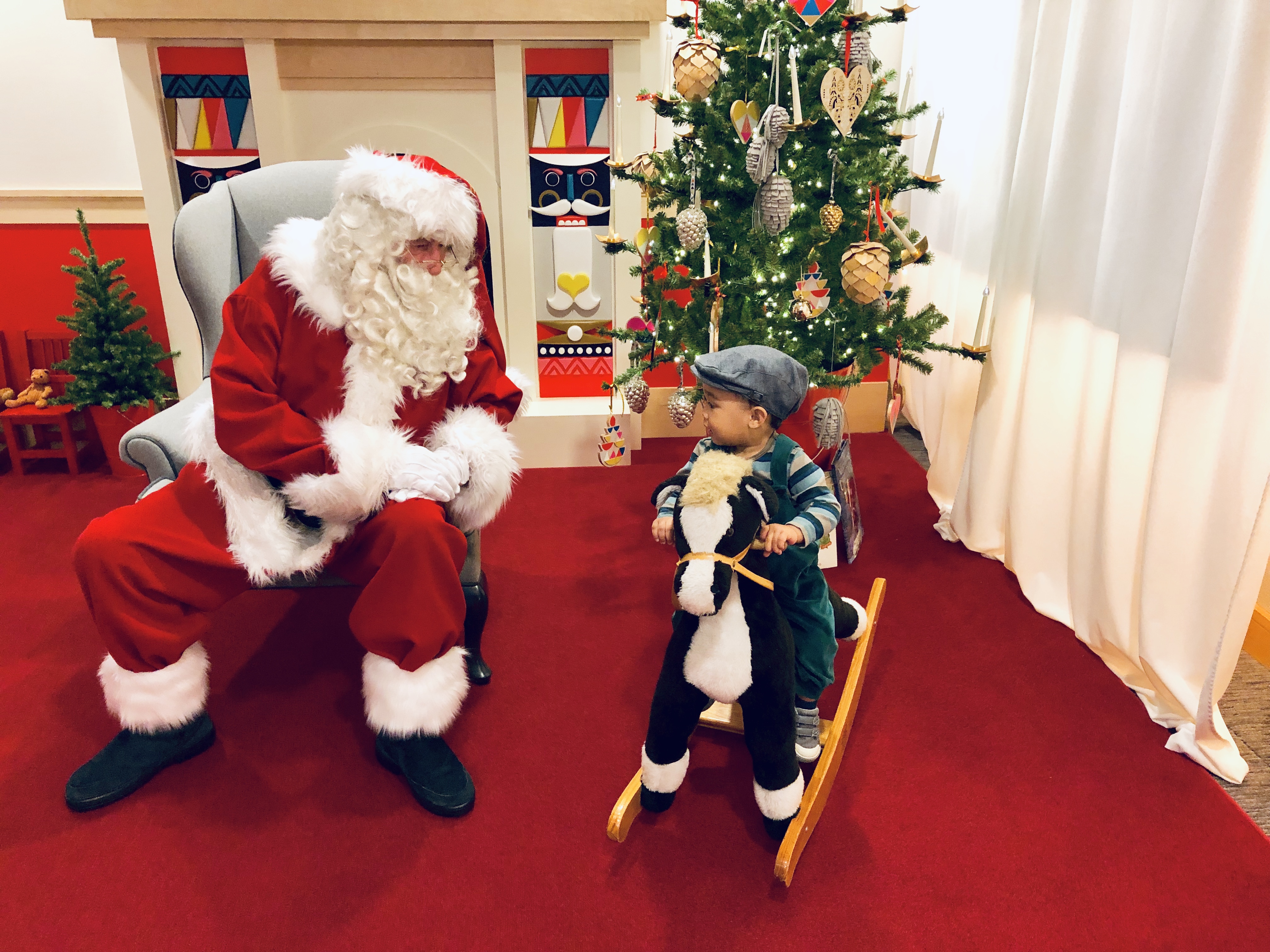 We got lucky this time, I thought for sure he was going to cry! My trick was giving Santa the candy cane and told him to hand it to Avery, instead of just trying to plop Avery on his lap!