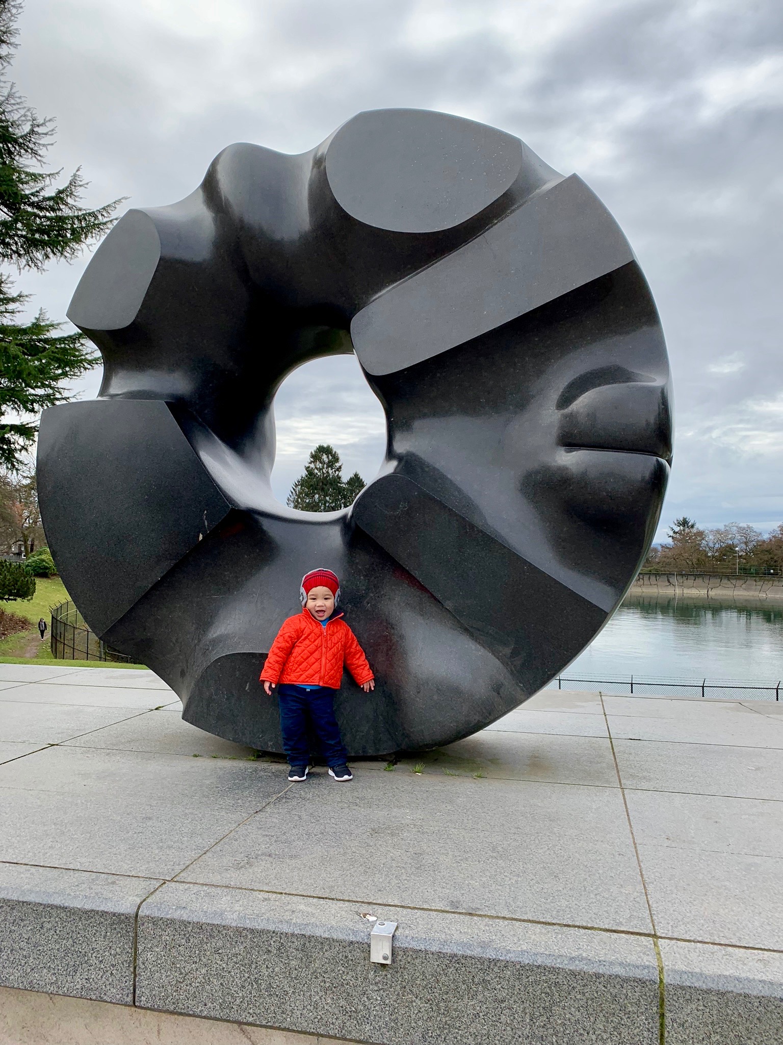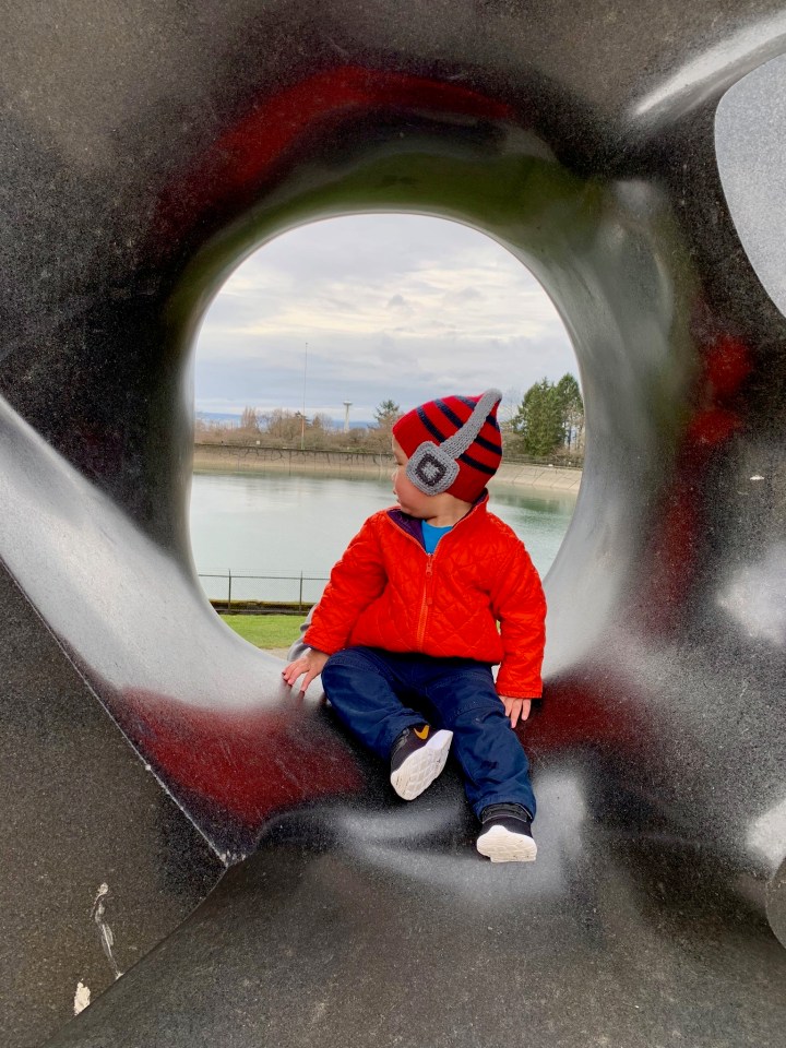 I’m an adventurer and art lover. One of my favorite things to do is to pose in front of cool art, like The Black Sun sculpture in Volunteer Park in the Seattle neighborhood of Capitol Hill.