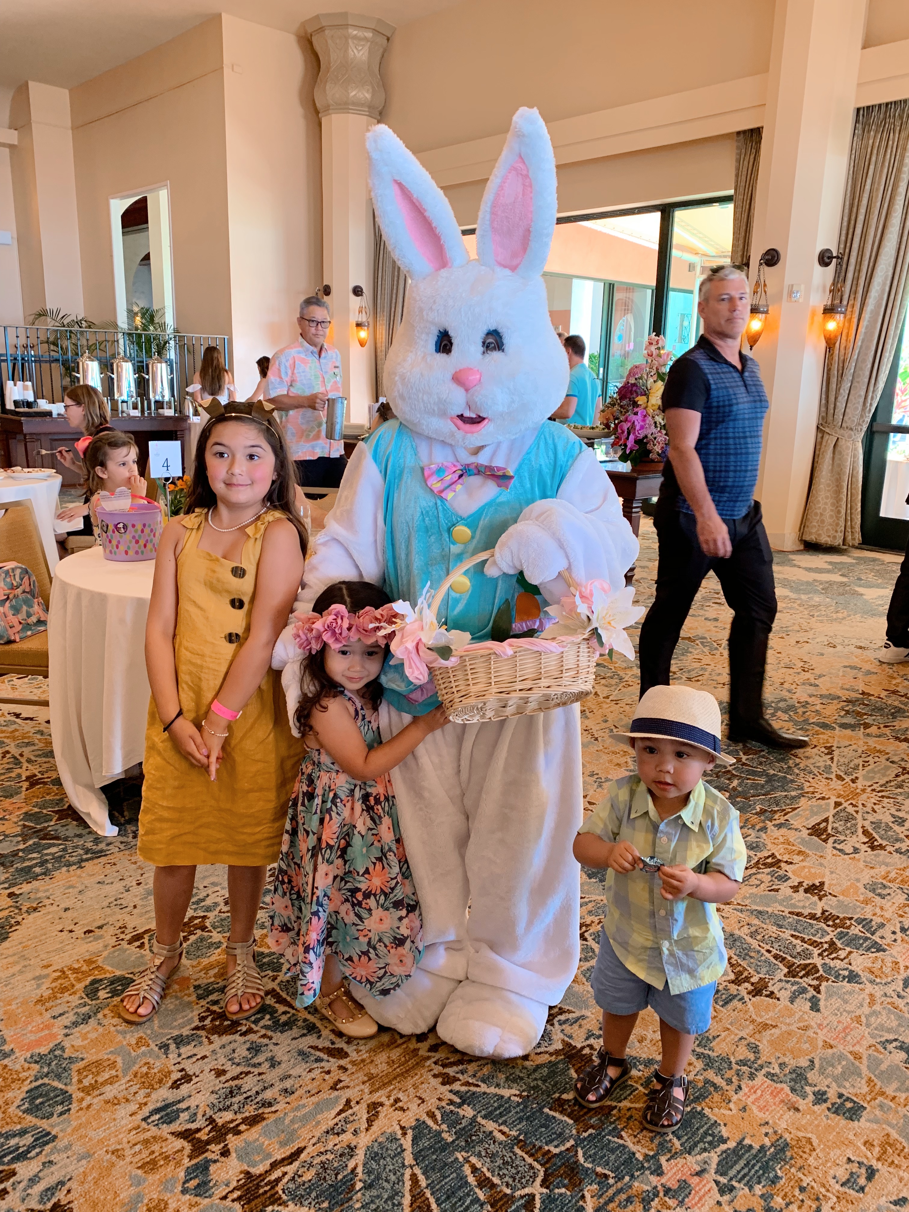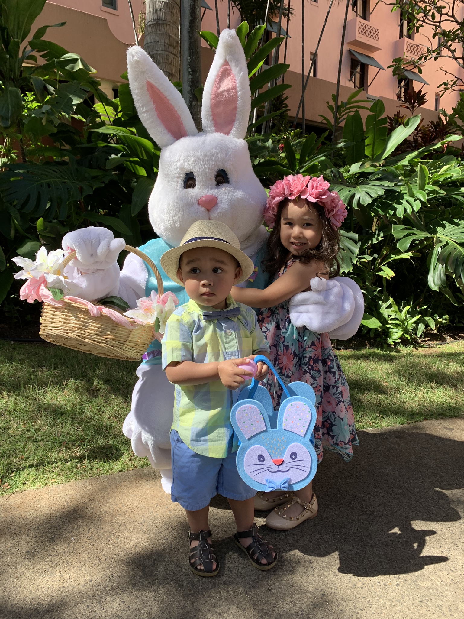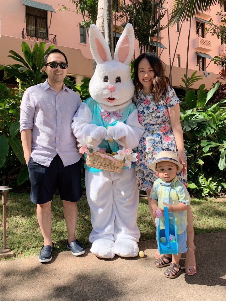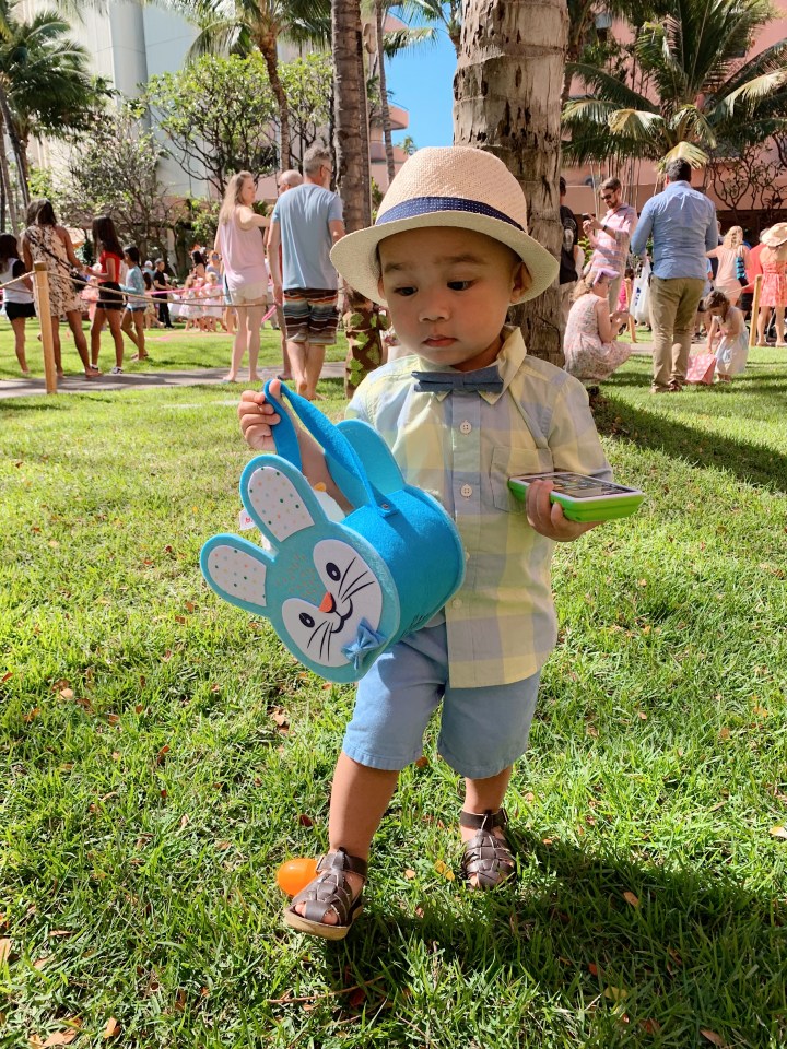 We spent Easter Sunday at The Royal Hawaiian beginning with an easter egg hunt! This was Avery’s first time doing an egg hunt and overall he did pretty good. He wouldn’t let go of his toy phone so while one hand was holding the phone the other was holding the basket and then he would see an egg, let go of the basket and use that hand to pick up the egg! It worked and he got about 8 eggs!
