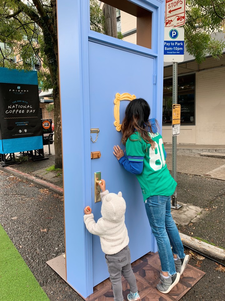 There were also photo opportunities for the “Friends” enthusiasts in attendance. They could take a picture on the signature Central Perk orange couch where the friends spent a good chunk of their time or in front of the famous purple front door of Monica and Rachel’s apartment (the number of which changed from 5 to 20 when fans questioned why the friends were climbing up stairs if they lived on the first floor.)
