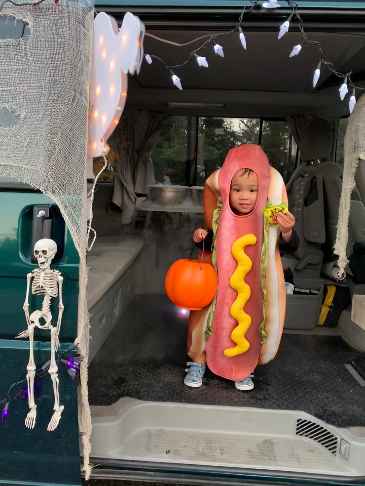 After we were done setting up, I got Avery dressed in his hotdog costume which was the absolute cutest thing ever and trick-or-treated around! Some of the decorated trunks were simply amazing, the ideas and creativity used was really neat! Avery had a blast and managed to score some pretty decent candies for mama!