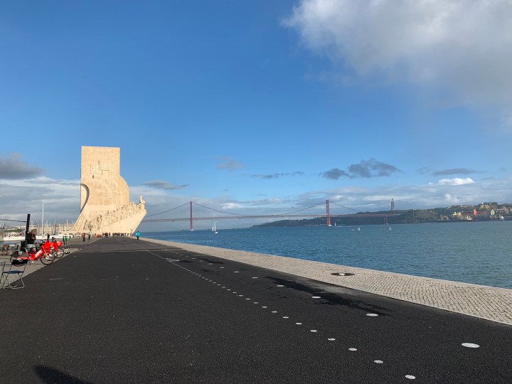 Along either side are sculptures of 32 historical figures from this period. At the peak is a 29 ft. statue of Henry the Navigator holding a model of a type of ship called a ‘carrack’.