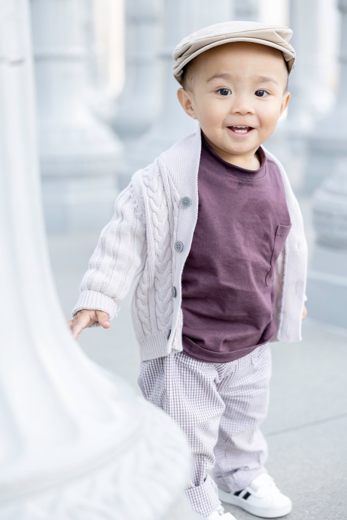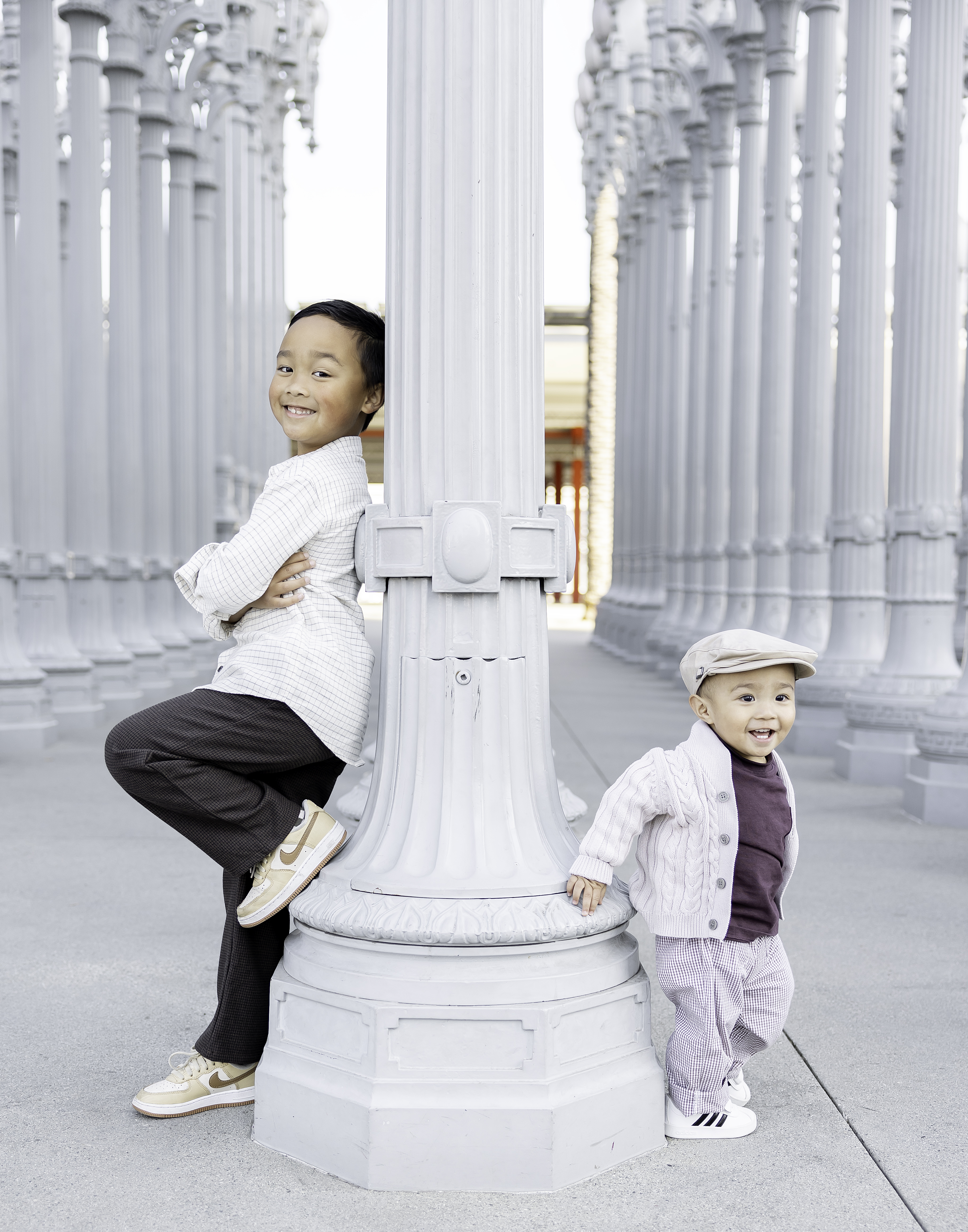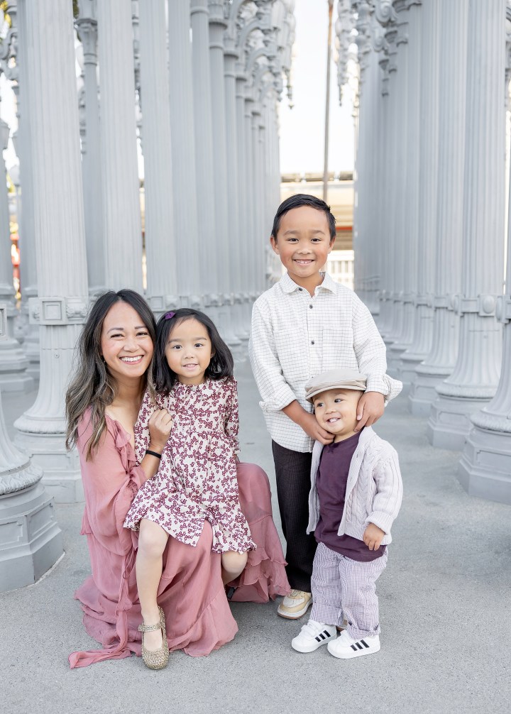 The holiday season always sends me on the hunt for that perfect family photo spot, and ever since moving to Los Angeles, the Urban Light installation at LACMA had been at the top of my list. This iconic forest of 202 beautifully restored streetlamps from the 1920s and ’30s felt like the perfect backdrop for our crew—somewhere the kids could wander, play, and still give us those magic-hour moments.
